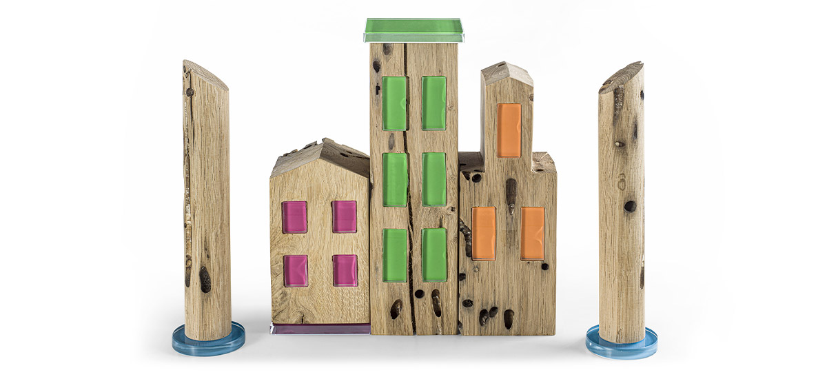 Entdecken Sie die Cities Collection und kombinieren Sie die Elemente, um eine eigene Stadt zu erschaffen, um Ihre Räume mit exklusiven und nachhaltigen Artikeln zu gestalten.