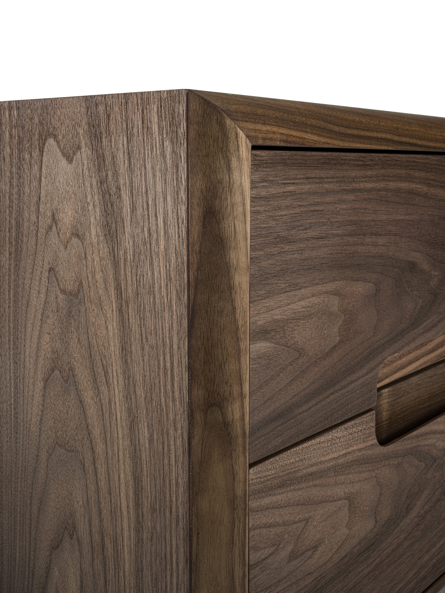 Nachttisch mit Massivholz- und Tischlerplattenstruktur, mit 2 Schubladen mit Massivholzfronten und traditionellen Schwalbenschwanzverbindungen. Schubladenöffnung mit geformtem und versenktem Griff.