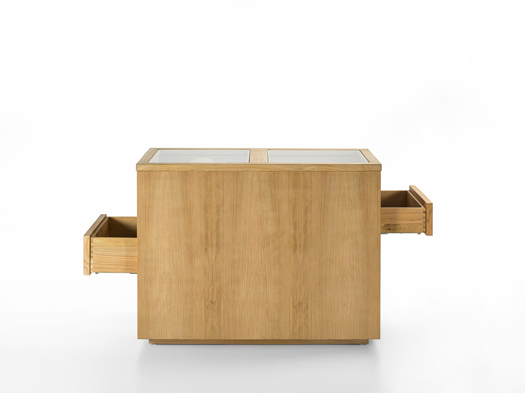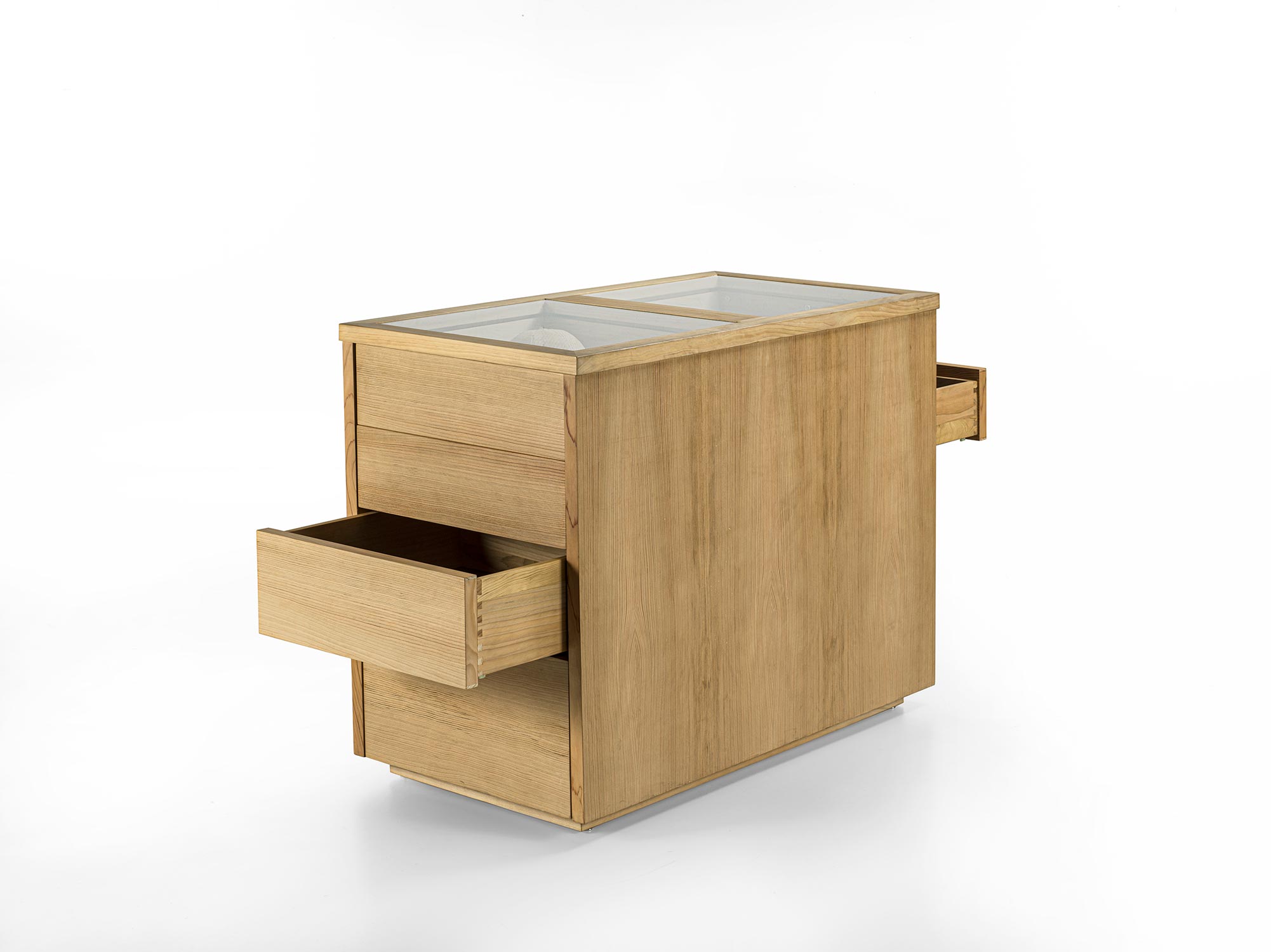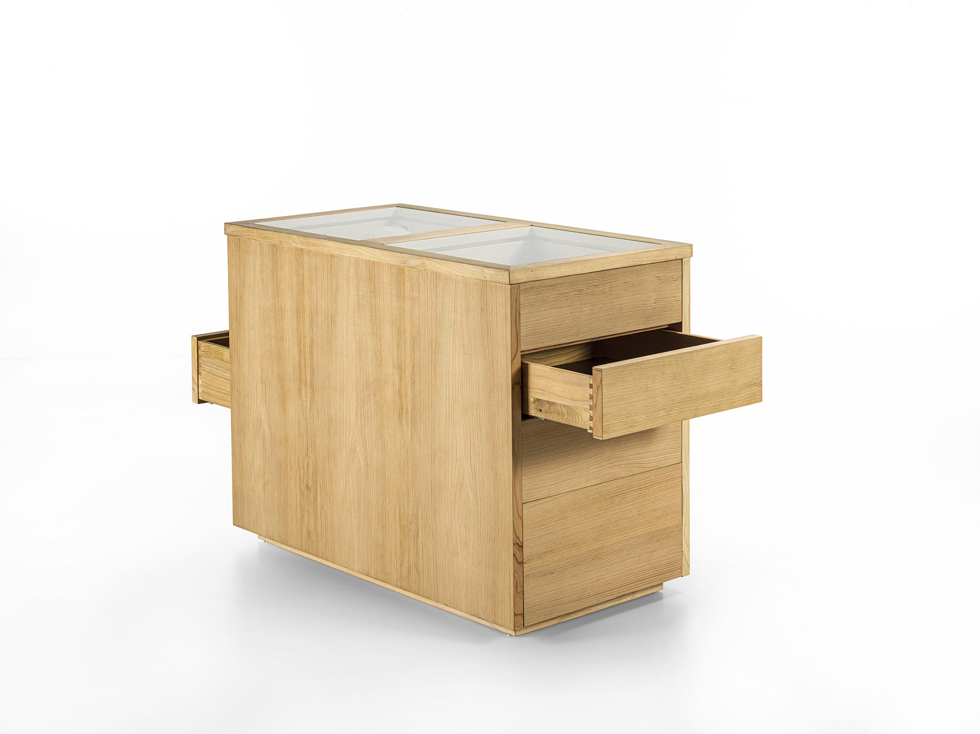 Das Schranksystem Avant wird durch ein zentrales Aufbewahrungselement ergänzt. Organisiert mit 4 beidseitig angeordneten Schubladen mit traditioneller Schwalbenschwanzverbindung. Ideal für die Aufbewahrung von Accessoires für Sie und Ihn, jedes mit seinem eigenen Platz. Hergestellt aus Tischlerplatte und Massivholz und mit einer Glasplatte.