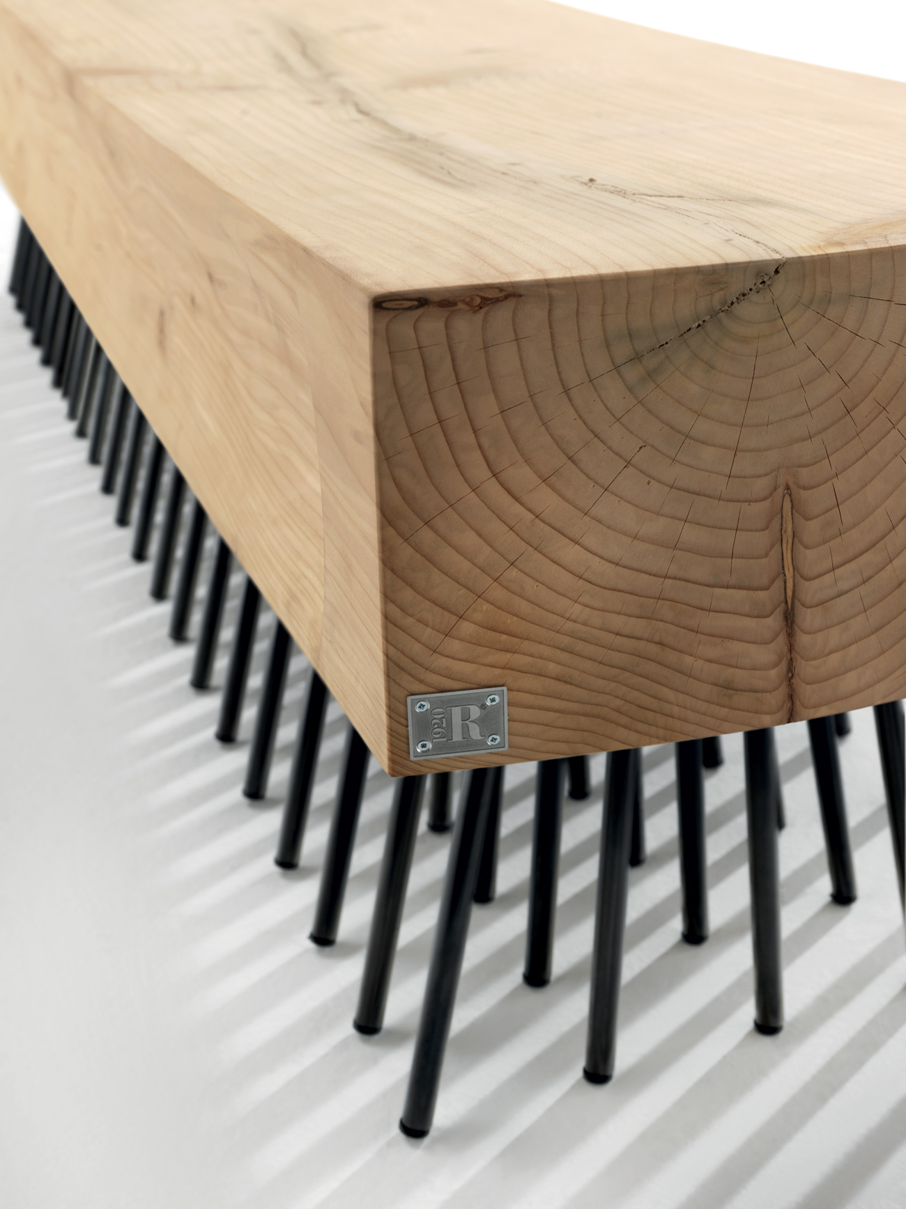 Bank aus einem einzigen massiven Block duftendes Zedernholzes gewonnen. Maßstabgerechte Reproduktion einer Bürste, mit Stützen aus Eisen.