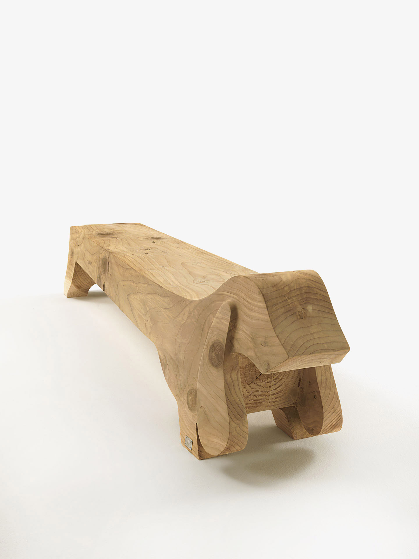 Bank aus einem einzigen massiven Block aus duftendem Zedernholz hergestellt, deren Form sich an der Tierwelt inspiriert.