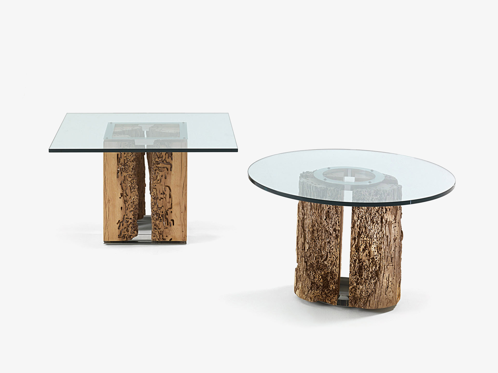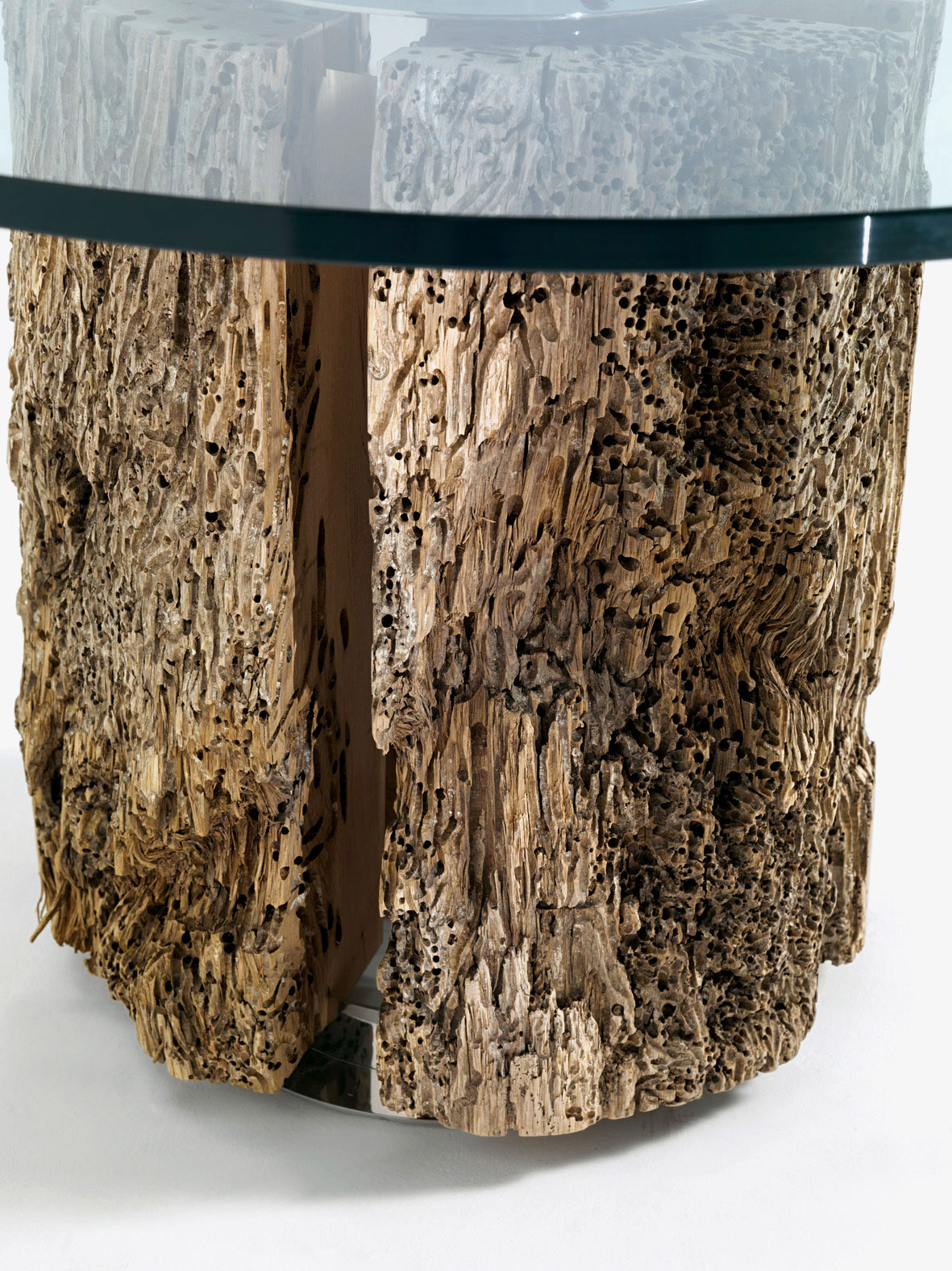 Runder Couchtisch mit Klarglasplatte Stärke 1,5 cm und Untergestell aus Briccola.