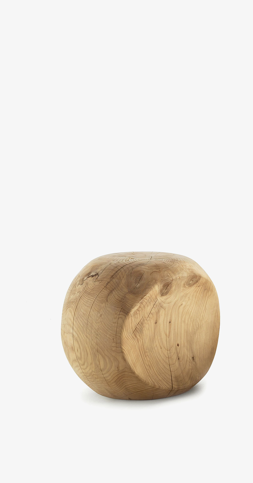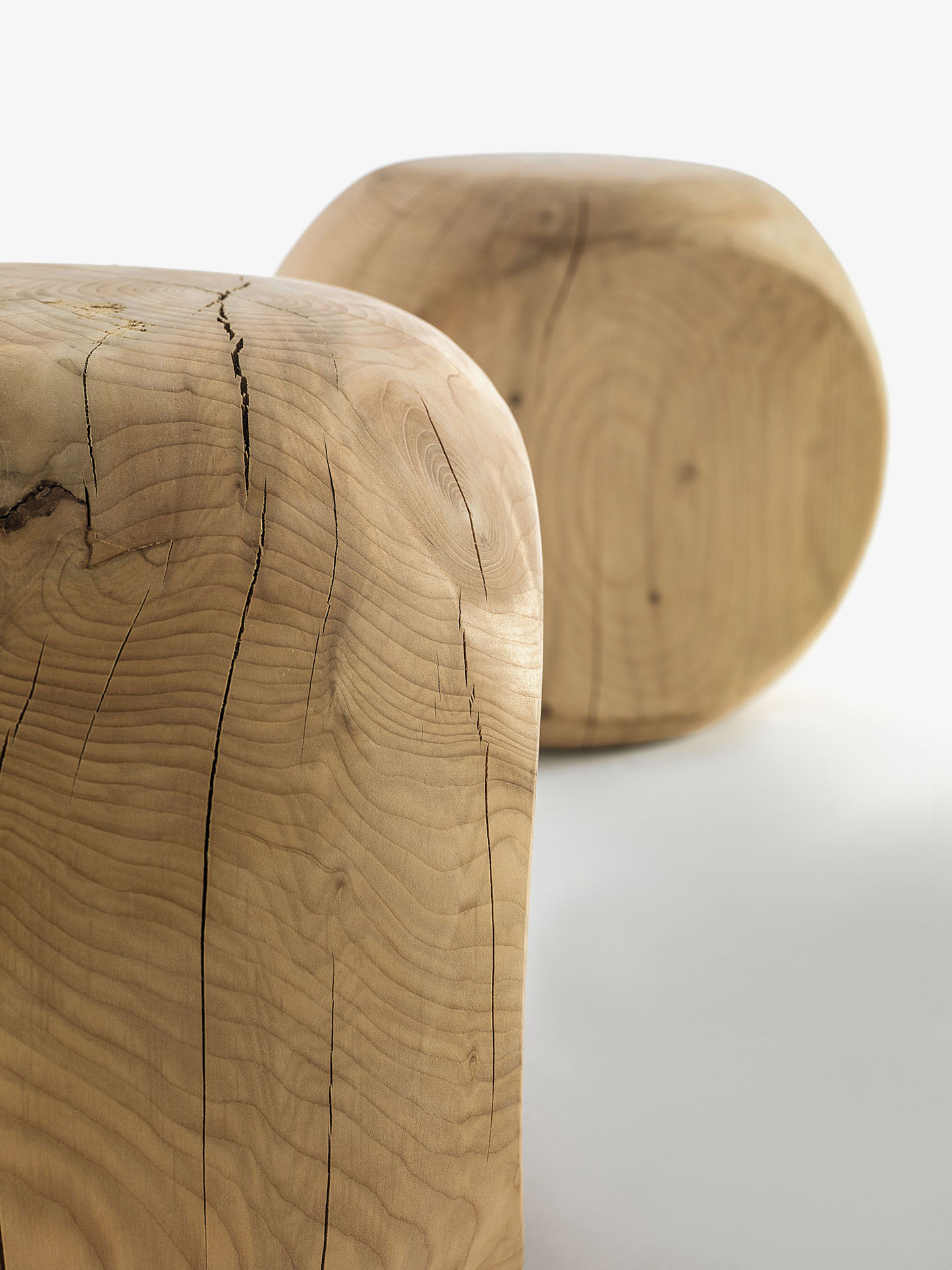 Hocker aus einem einzigen massiven Block duftendes Zedernholzes gewonnen, vielfältig nutzbar.