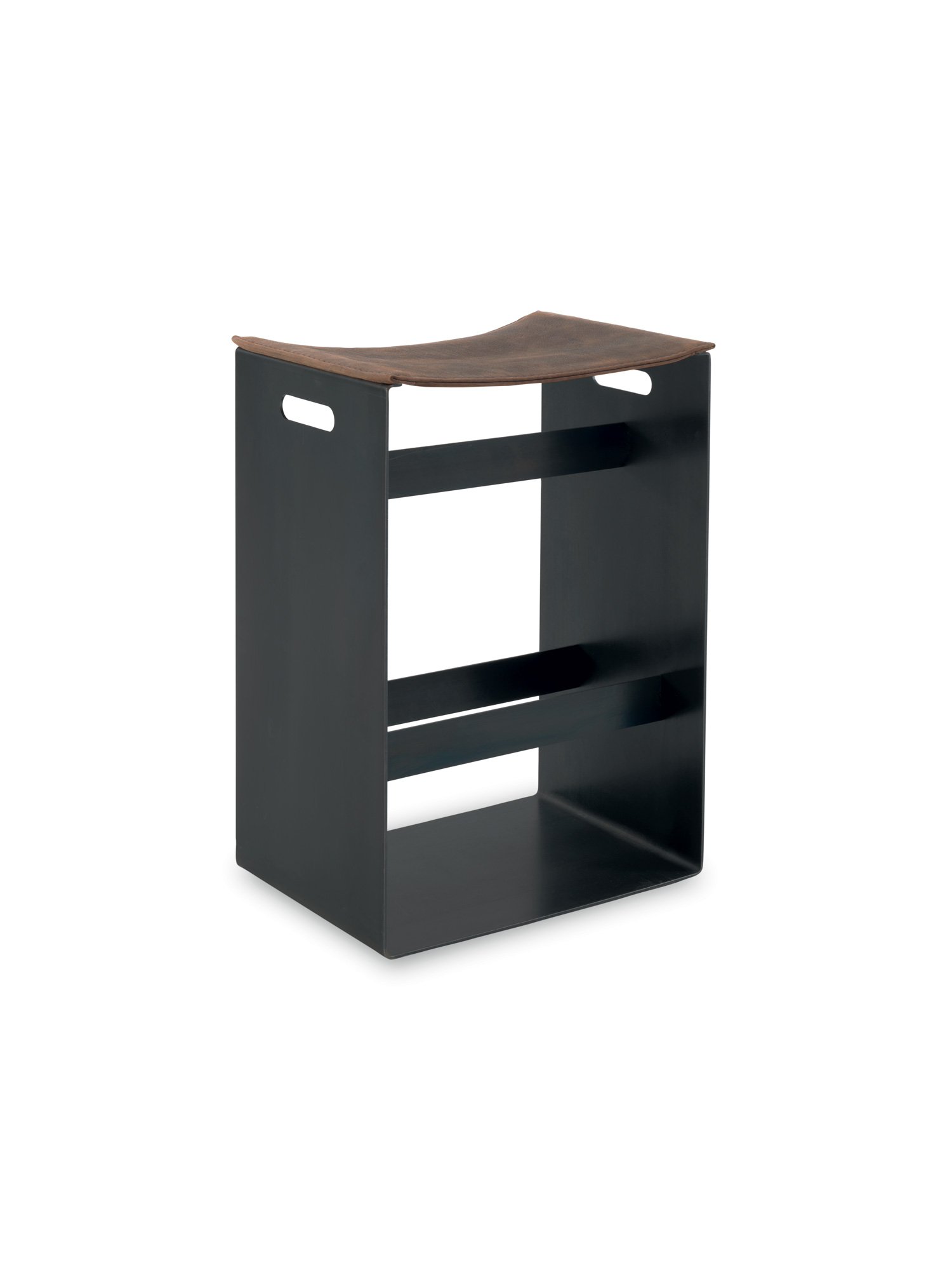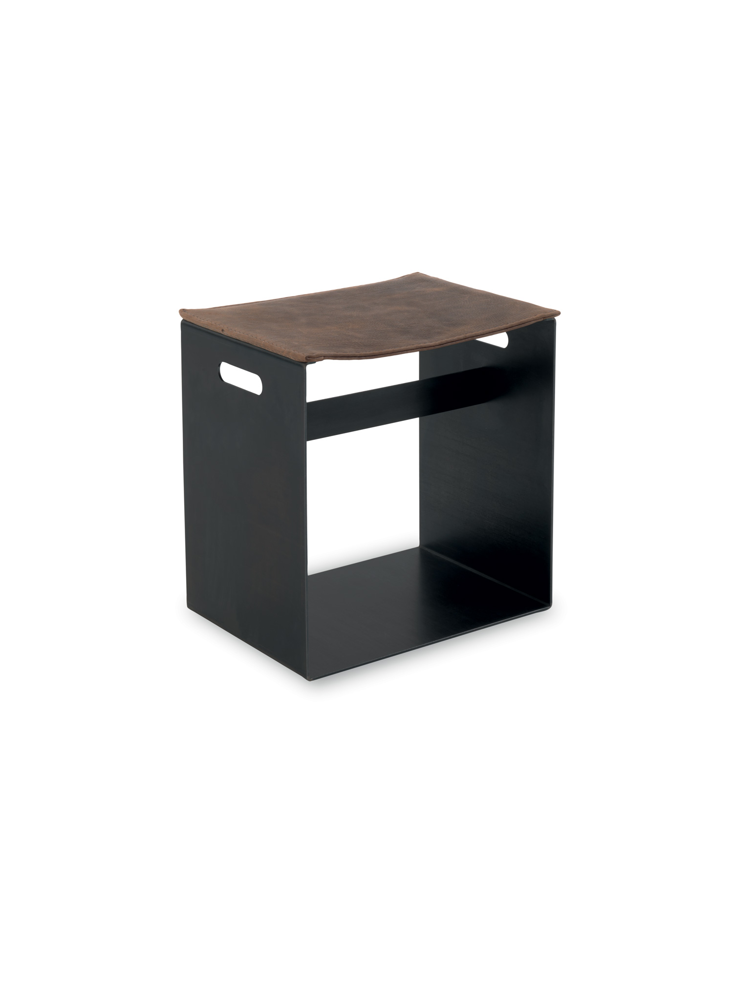Hocher mit Eisengestell und Sitz aus Leder. In zwei Höhen erhältlich.