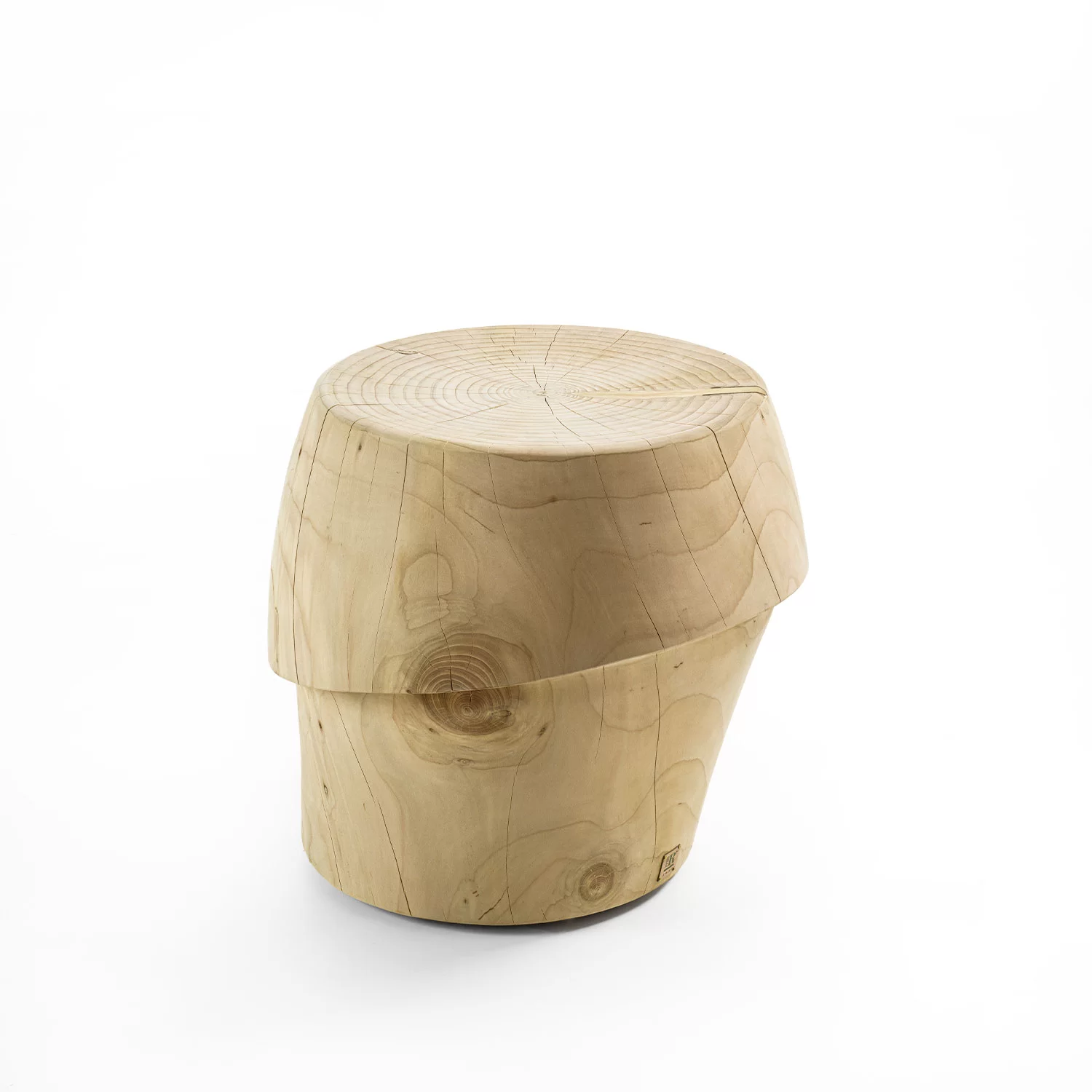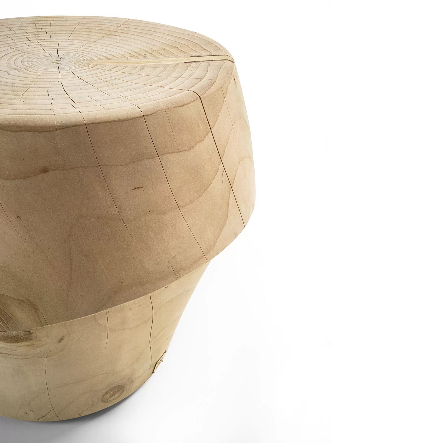 Hocker aus einem einzigen massiven Block duftendes Zedernholzes gewonnen, Design von einem Helm inspiriert.