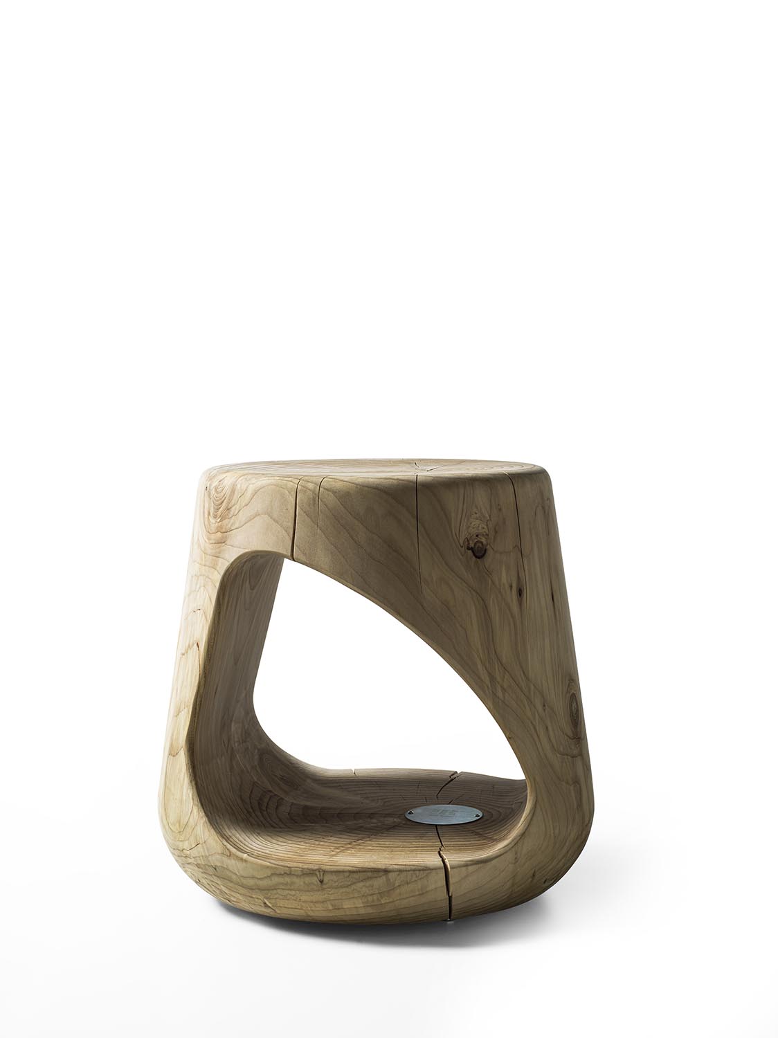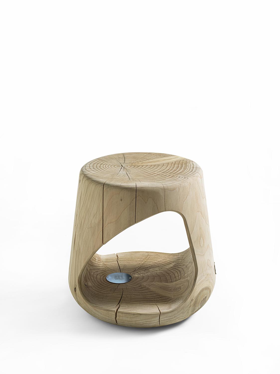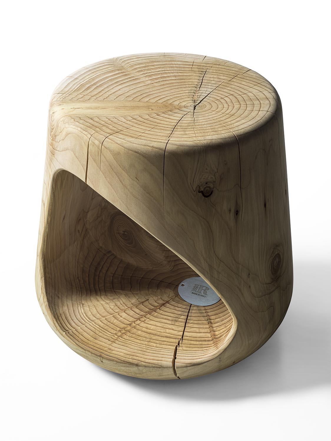 Hocker aus einem einzigen massiven Block duftendes Zedernholz gewonnen. Er zeichnet sich durch seine “weiche” und kurvige Linie aus. Seiner offene Raum ist für Gegenständen, Büchern usw. geeignet. Dank seiner Form kann der Hocker als Salon- oder Nachttisch verwendet werden.