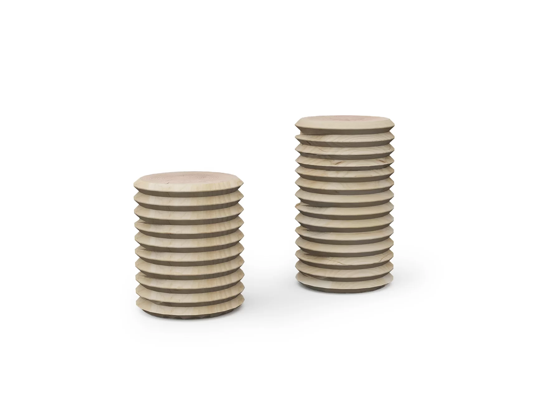 Hocker aus einem einzigen massiven Block duftendes Zedernholzes oder amerikanisches Nussbaum gewonnen, in der Form einer Schraube gestaltet. In den Versionen Small und Big erhältlich. Für den Außenbereich nur in A7 Zeder erhältlich.