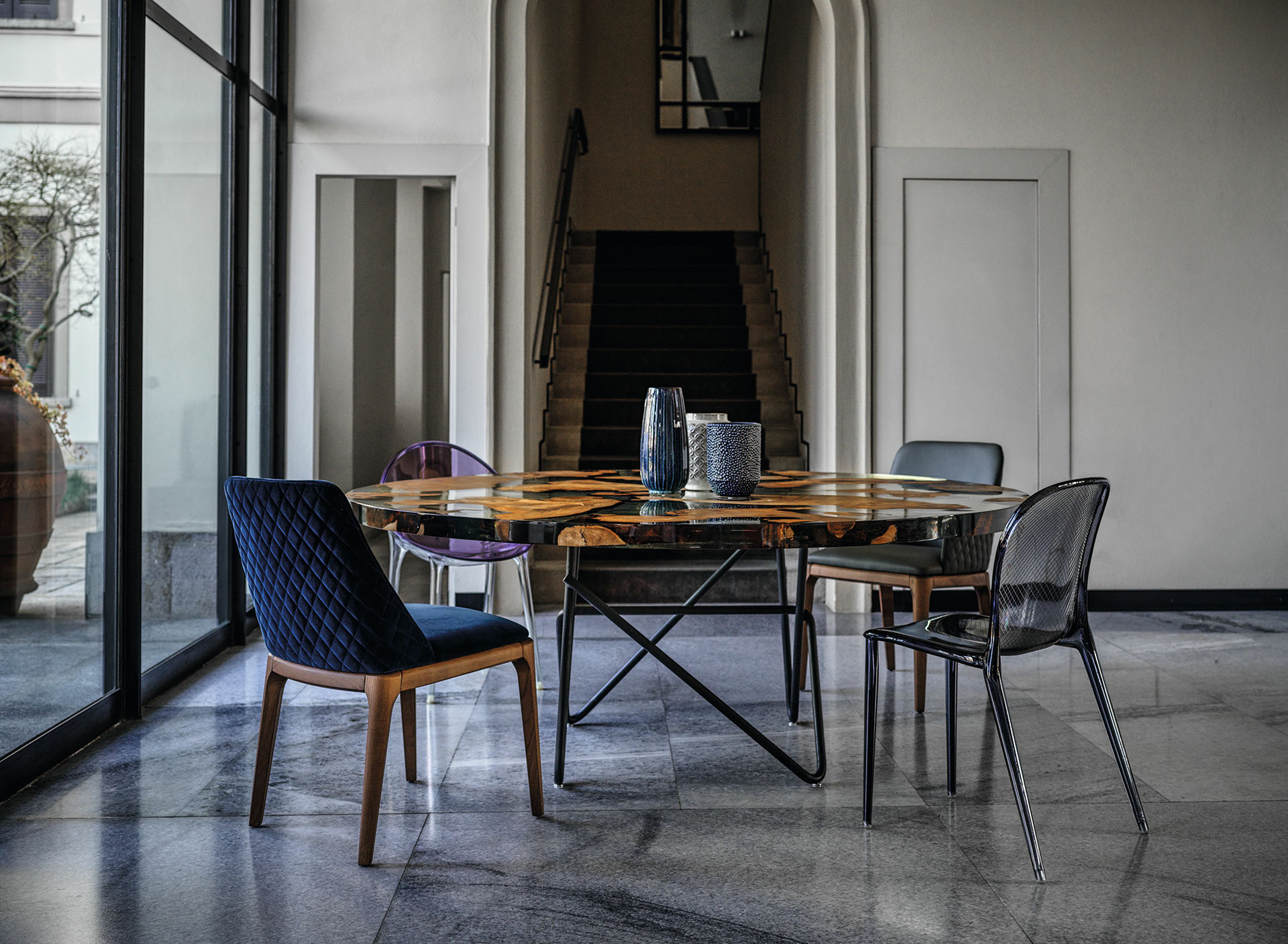 "All samples, as well as pictures of the available materials and finishes, are to be considered as purely indicative. Possible differences in colour and features of the materials used for production cannot be considered as reason for claim, because linked to their