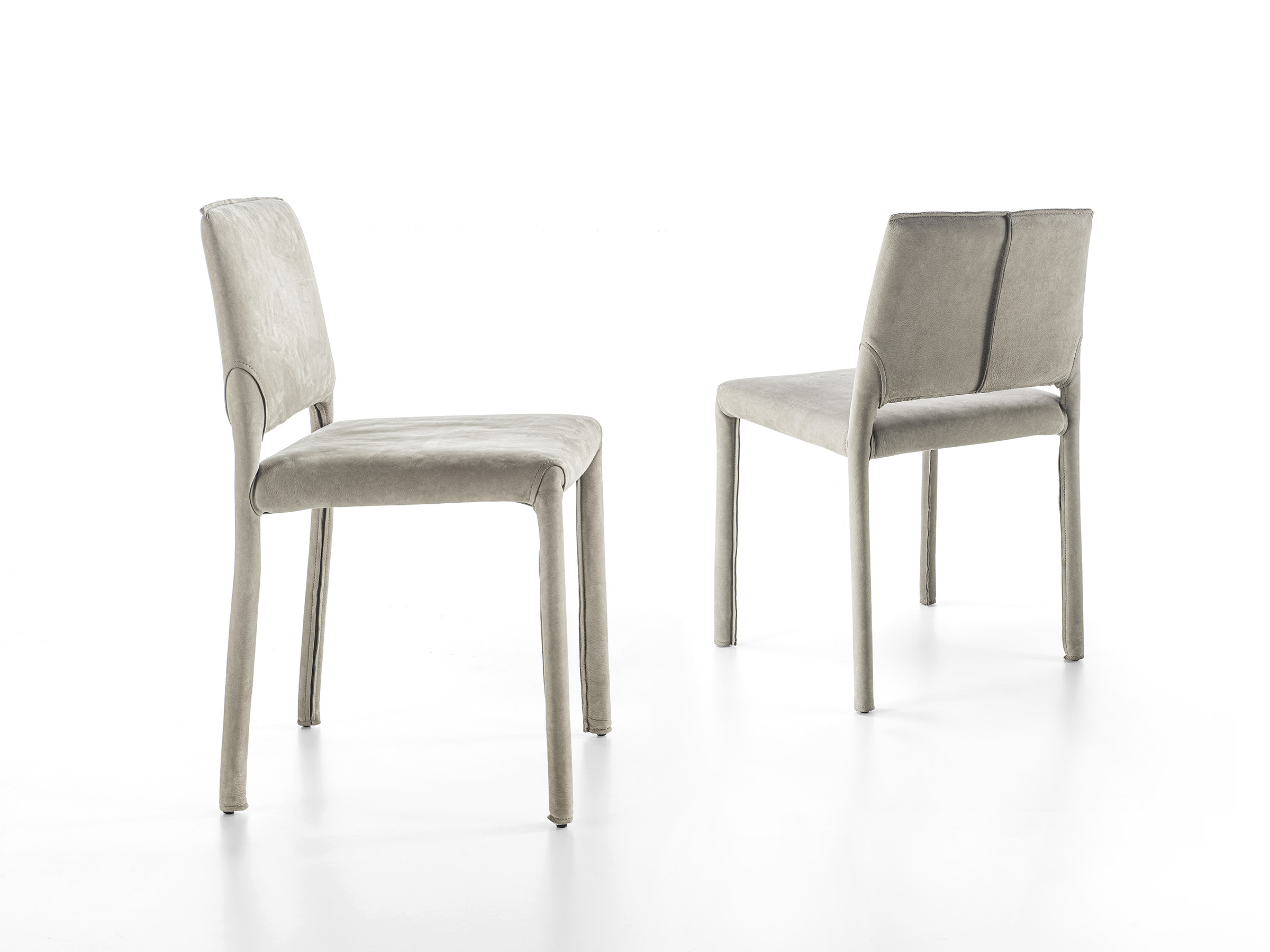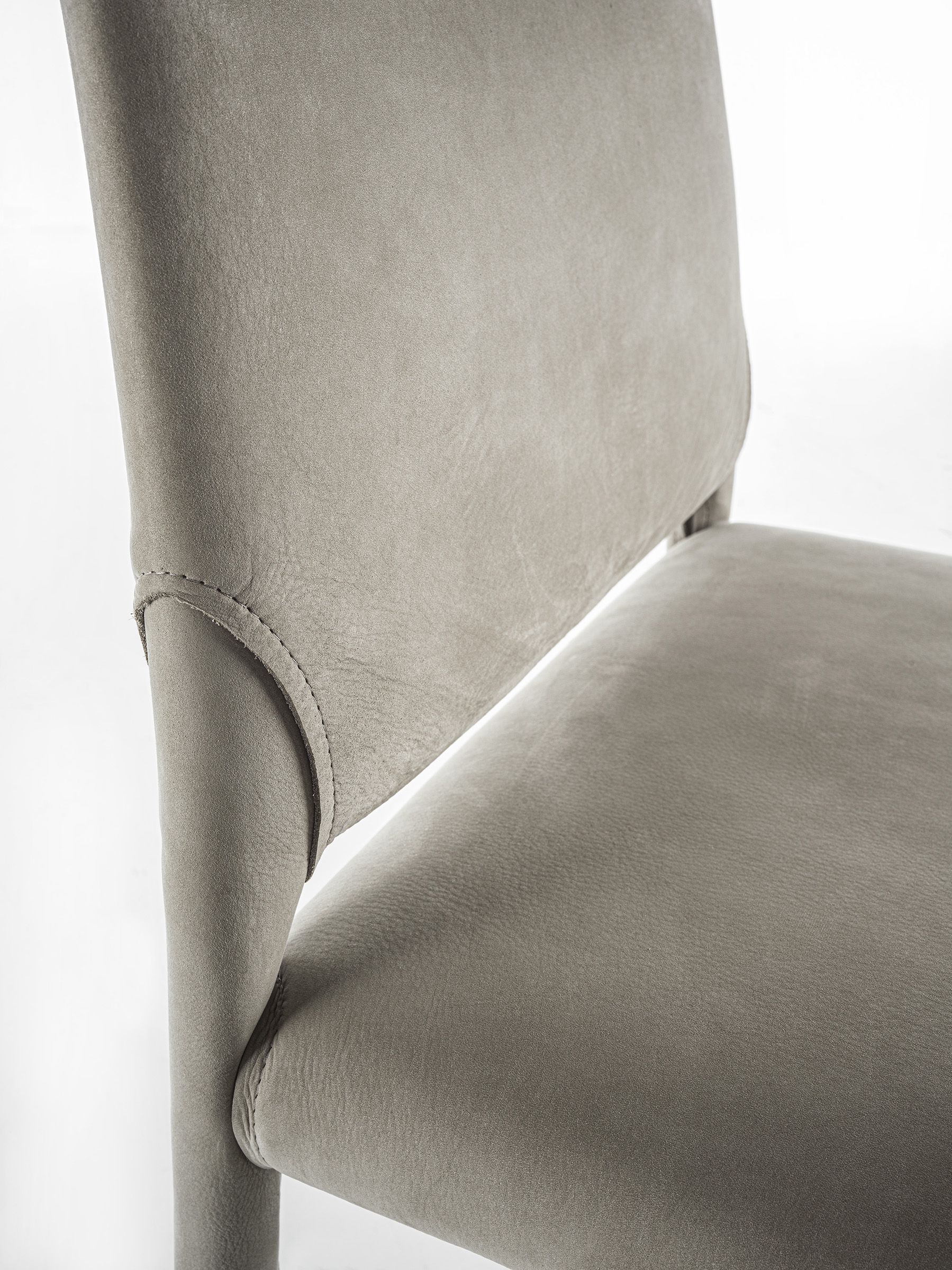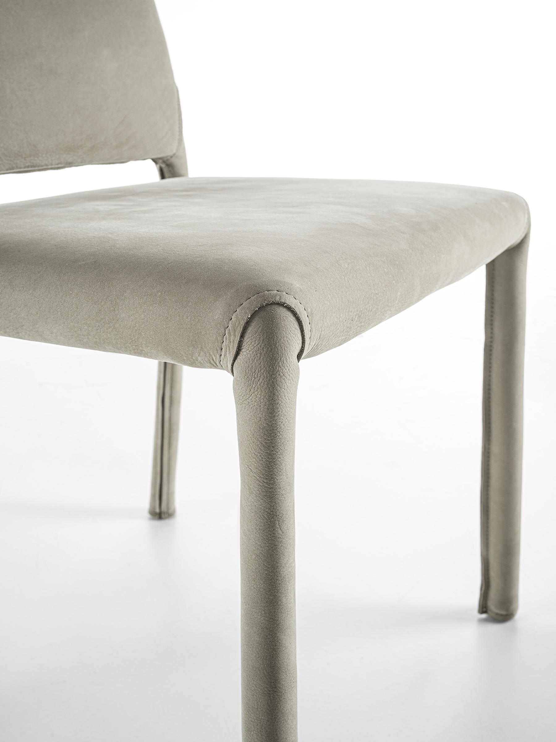 Neue, weiche Version des Stuhls. Der Metallrahmen ist gepolstert, um Komfort und Weichheit zu gewährleisten. Vollständig mit Leder bezogen, mit sichtbaren Nähten.