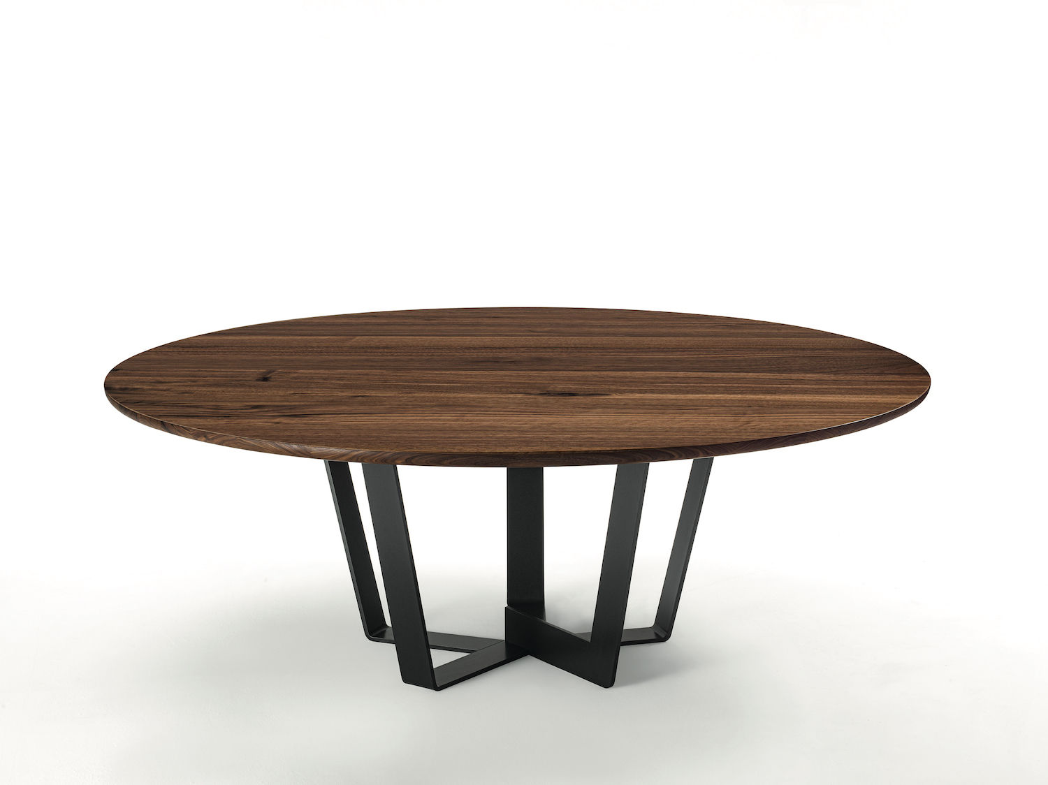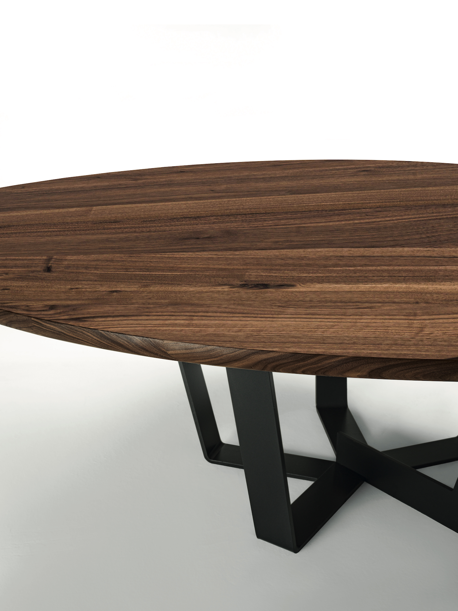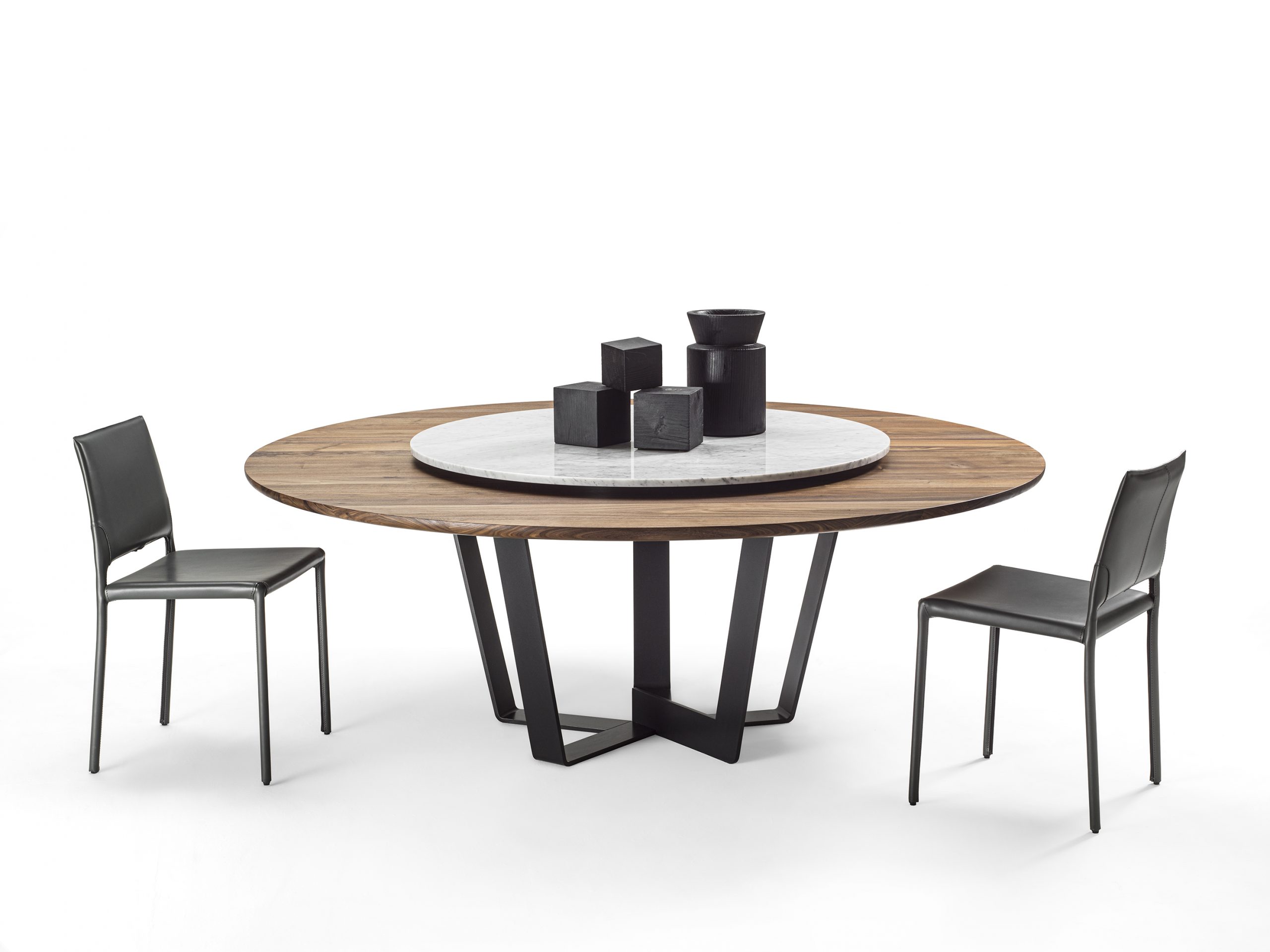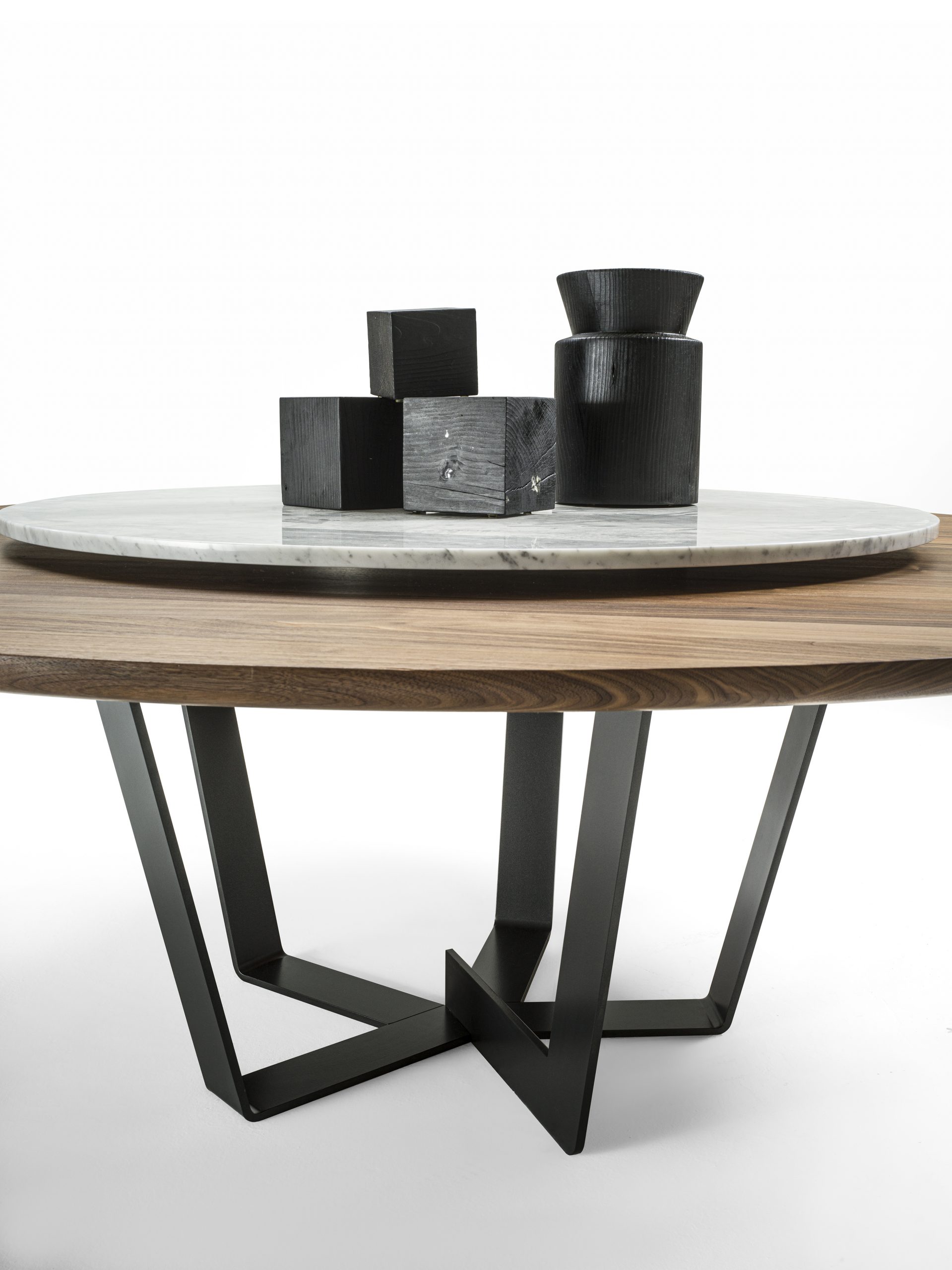 Runder Tisch mit Massivholzplatte mit der Möglichkeit, einen Drehteller Lazy Suzan aus Holz oder Marmor zu haben. Mit Eisengestell.