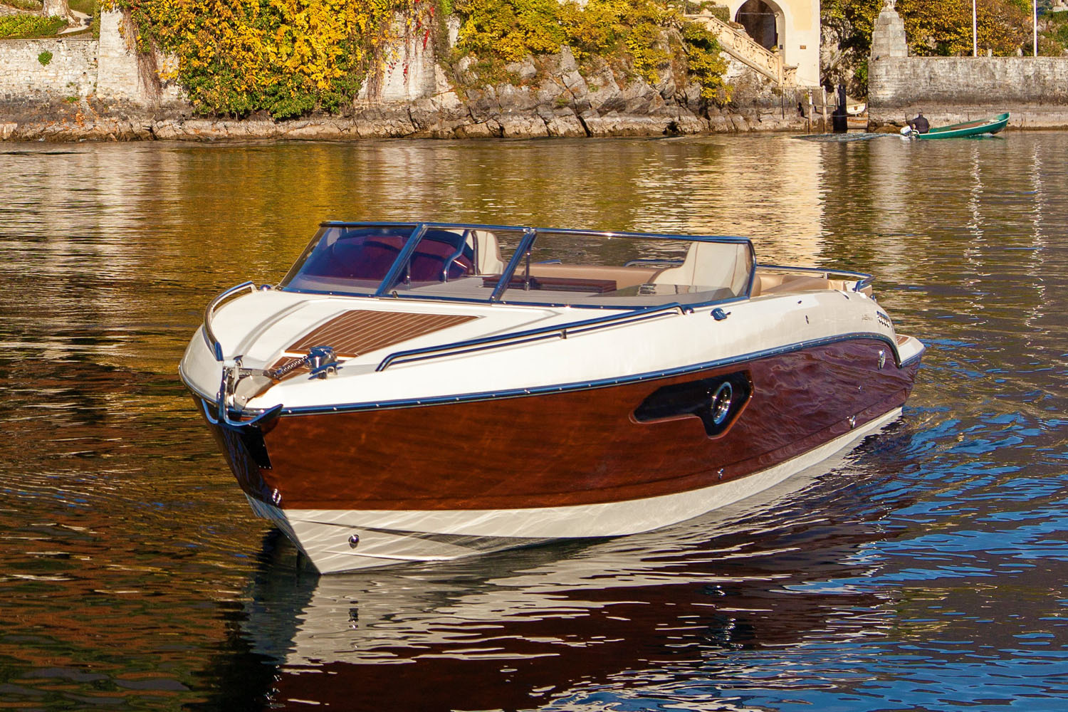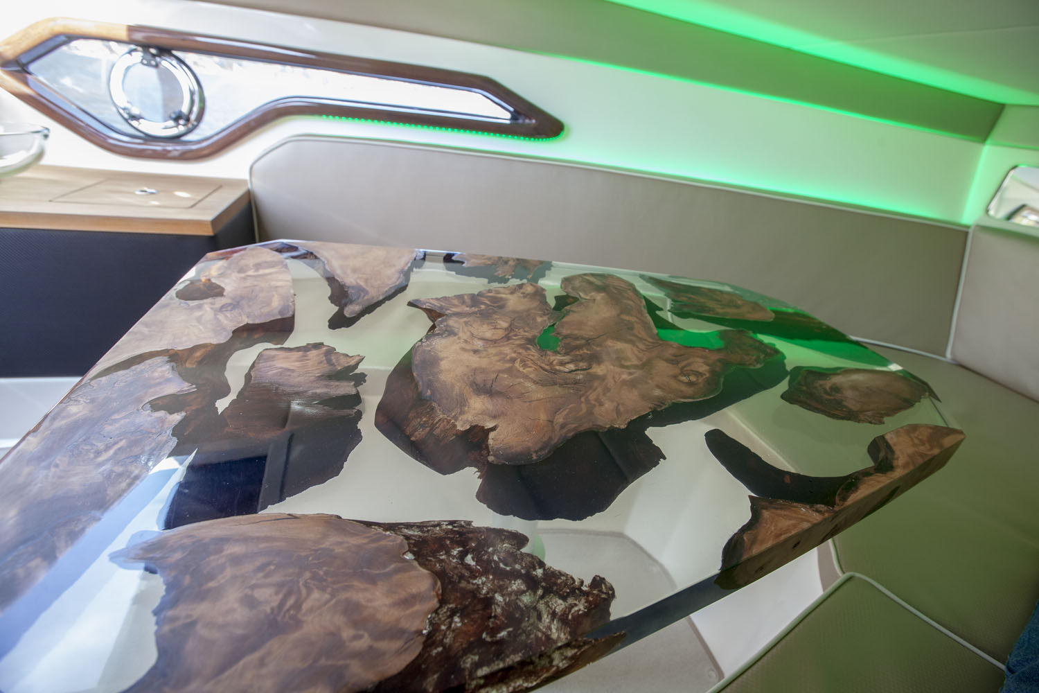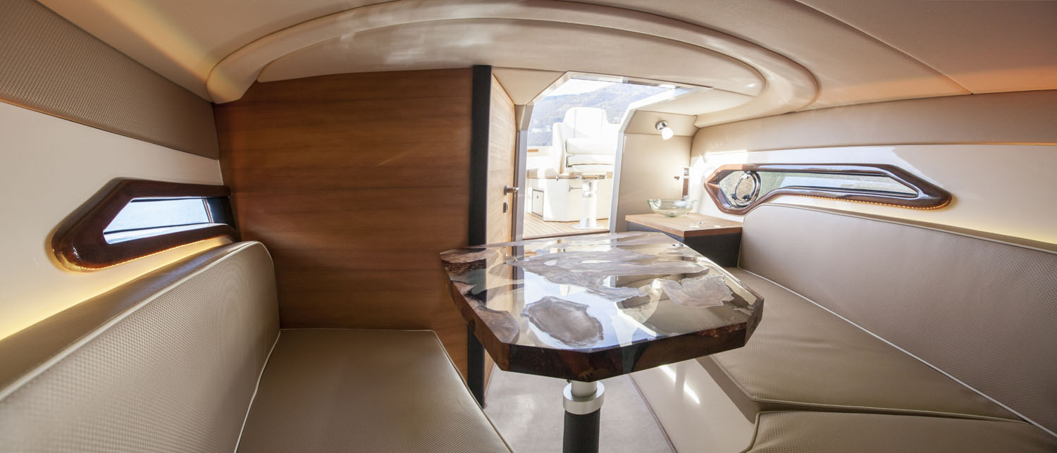 AMX 28 WOODLINE ist ein mutiger Projekt, der von der Synergie unter drei historischen Firmen wie Airon Marine, Riva1920 and Volvo Penta kommt. Die Herausforderung war, ein innovatives, technologisches fortgeschrittenes Schiff für einen raffinierten Nutzer ohne Kompromisse zu erstellen. Das know-how, die Erfahrung und Tradition dieser drei Marken wurden in einem einzigen eleganten, durchführten und funktionalen Objekt umhüllen. Für AMX 28 WOODLINE hat Riva1920 beschlossen, einen exclusiven und kostbar Holz zu benutzen: Kauri. Der Stamm, aus dem die Inneneinrichtung und der Aussenbereich gemacht wurde, wurde 48,000 Jahre alt mit der Radiokarbonmethode von der Universität La Sapienza in Rom unterzogen. Um die ästhetischen und physikalischen Eigenschaften des Materials höchstens zu erhöhen, wurde der Holz bewusst natürlich gelassen. Außerdem der Holz wurde mit einem Öl natürlichen Ursprungs behandelt, das mit einem intensiven Parfüm ein ohnegleiches ensorisches Erlebnis erlaubt.