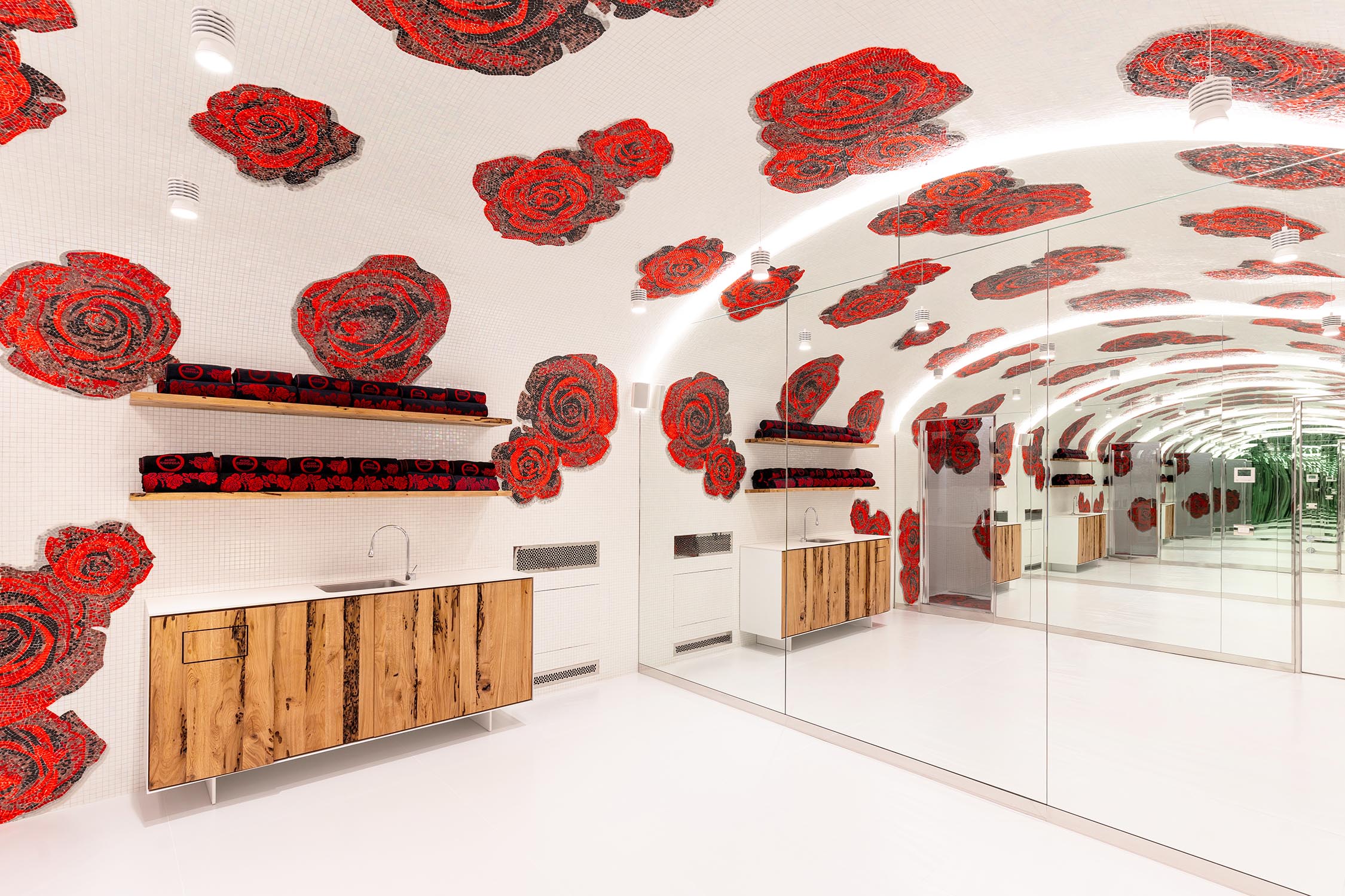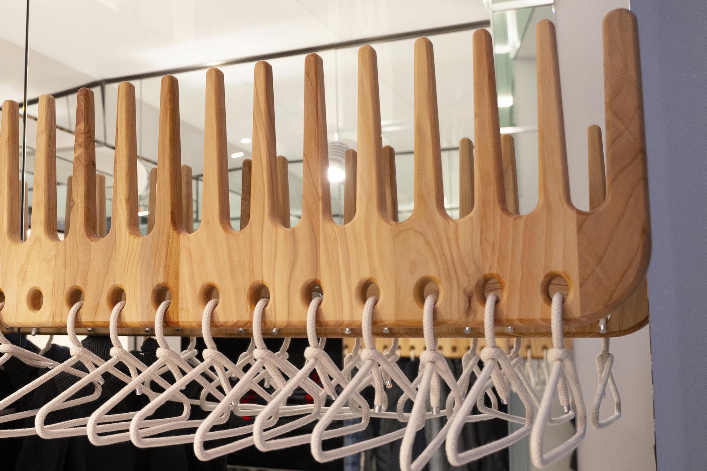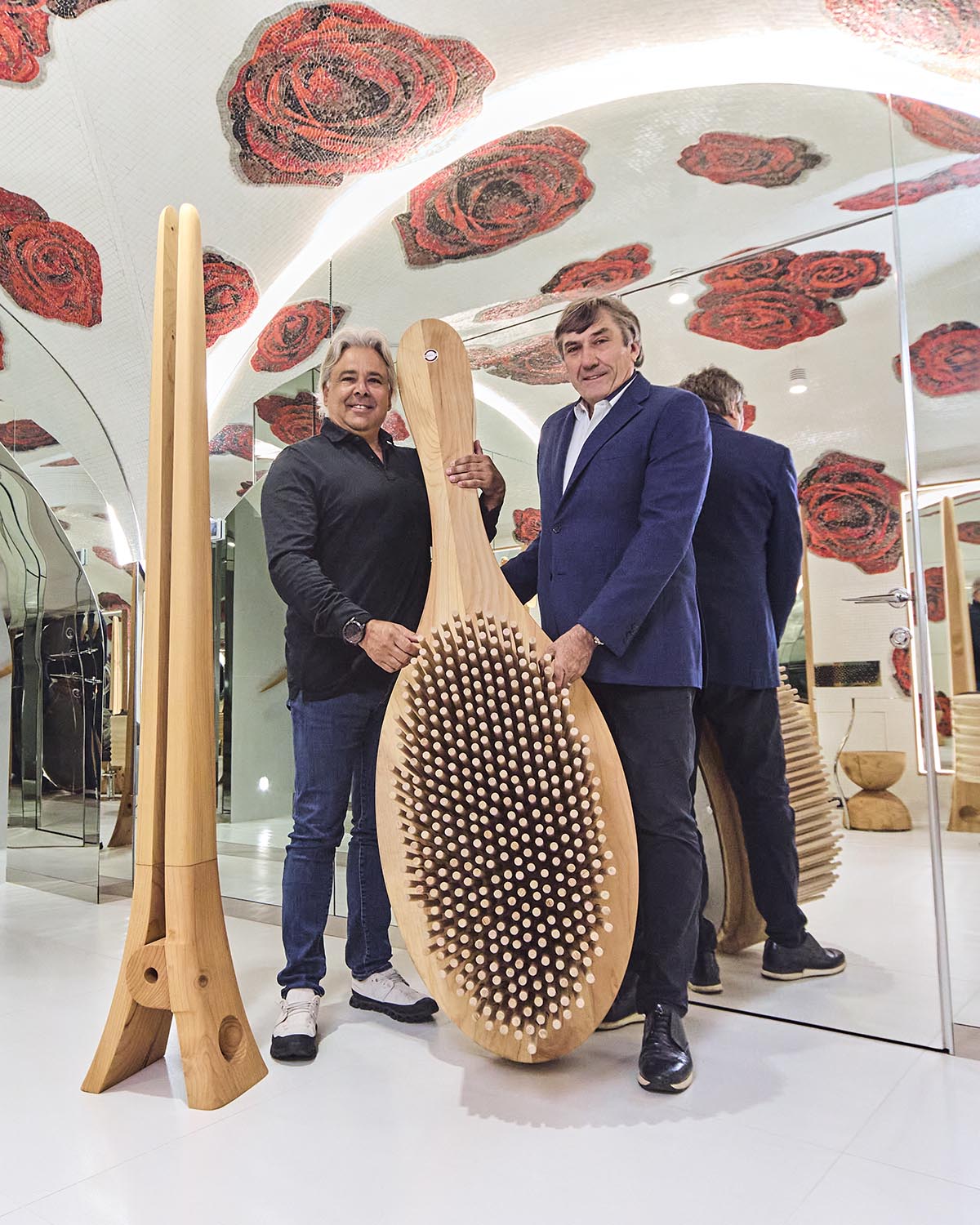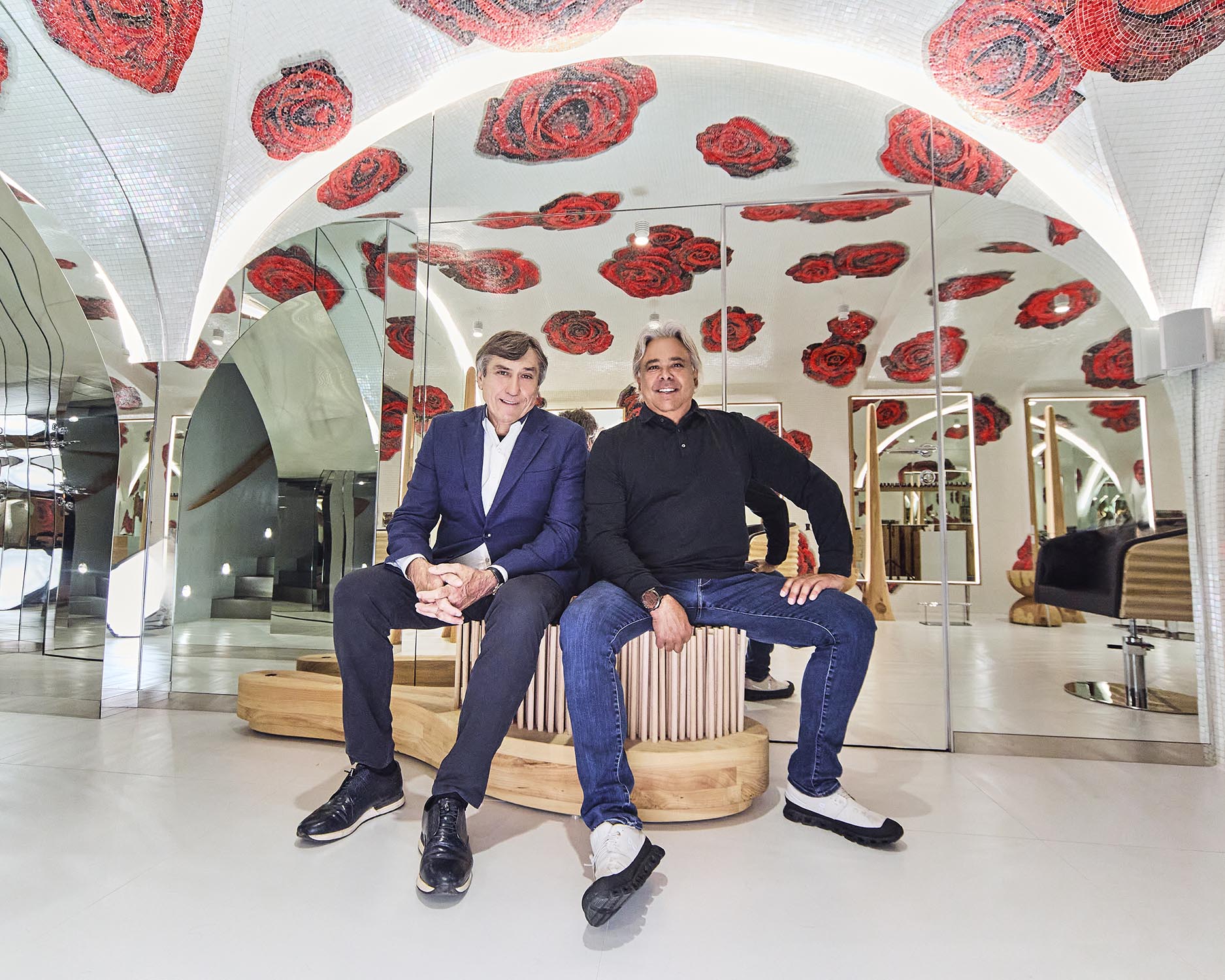 Letztere wurde für die Herstellung der Arbeitsplätze mit den Spiegelstationen BEKKUCCIO, Wartebereich-Sofas in Bürstenform AUDREY (inspiriert von der ikonischen Aldo Coppola-Bürste), die neuen Sessel KOMODA, die Design und Komfort vereinen, sowie für den Garderobenschrank LA PETTINEUSE, einen großen Kleiderständer in Kammform, eingesetzt.