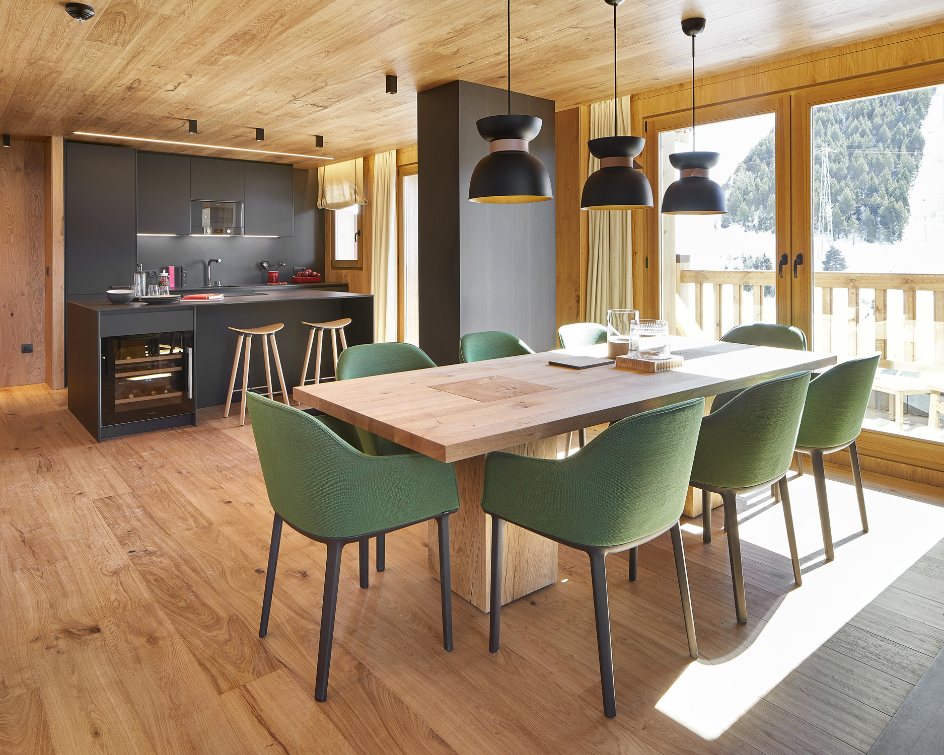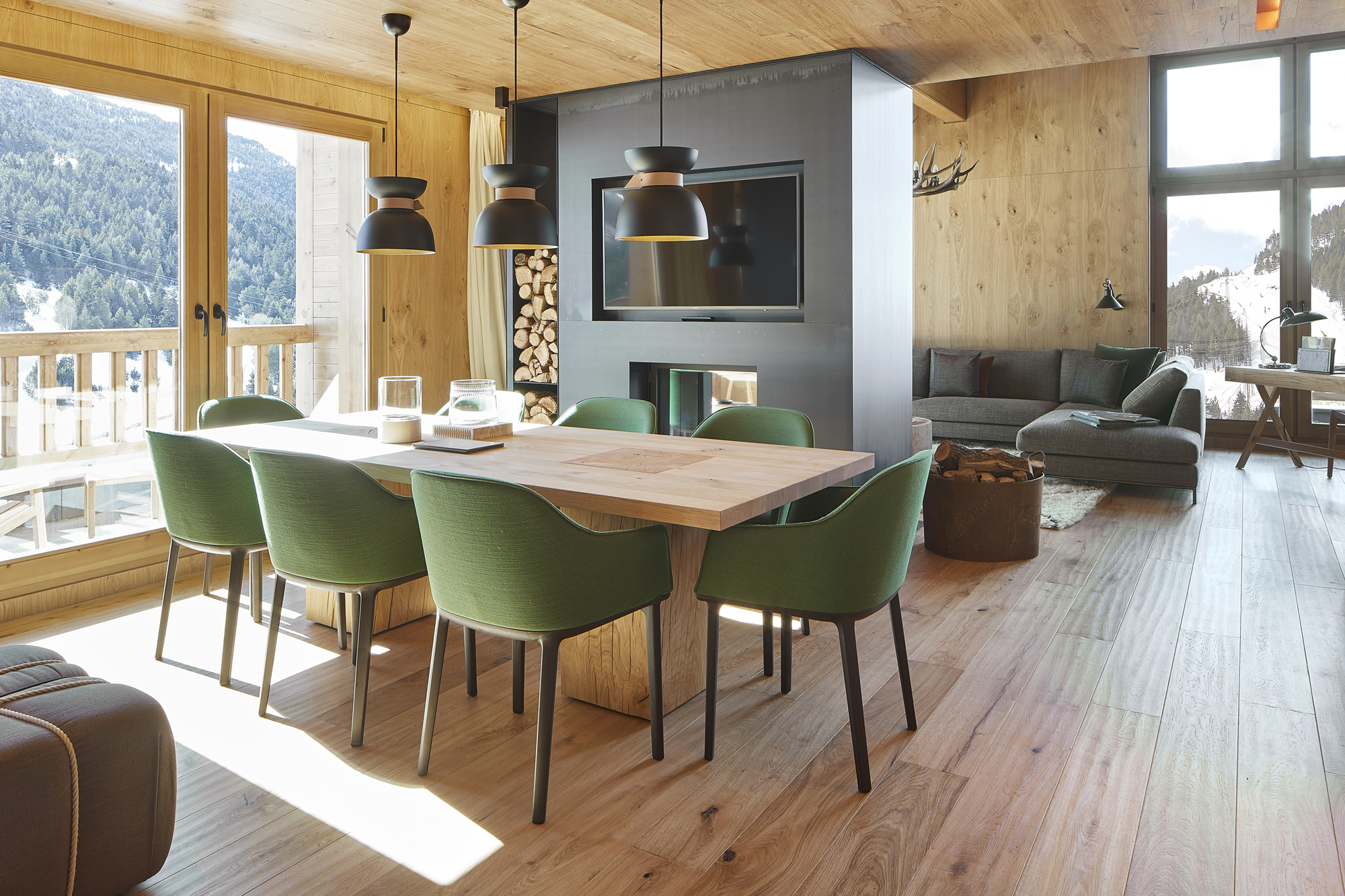 Die Wohnanlage befindet sich in einer warmen und faszinierenden Lage am Fuße des größten Skigebiets Andorras. In den Innenräumen sind Riva1920 Möbel aus der Home Collection ausgestellt, die sich in den Umgebungsstil perfekt einfügen. Massives Eichenholz und duftendes Zedernholz sind die vorherrschenden Materialien. In Kombination mit funktionsgemäßen und modernen Elementen schaffen sie ein neues Wohnkonzept, welches maximalen Komfort gewährleistet.