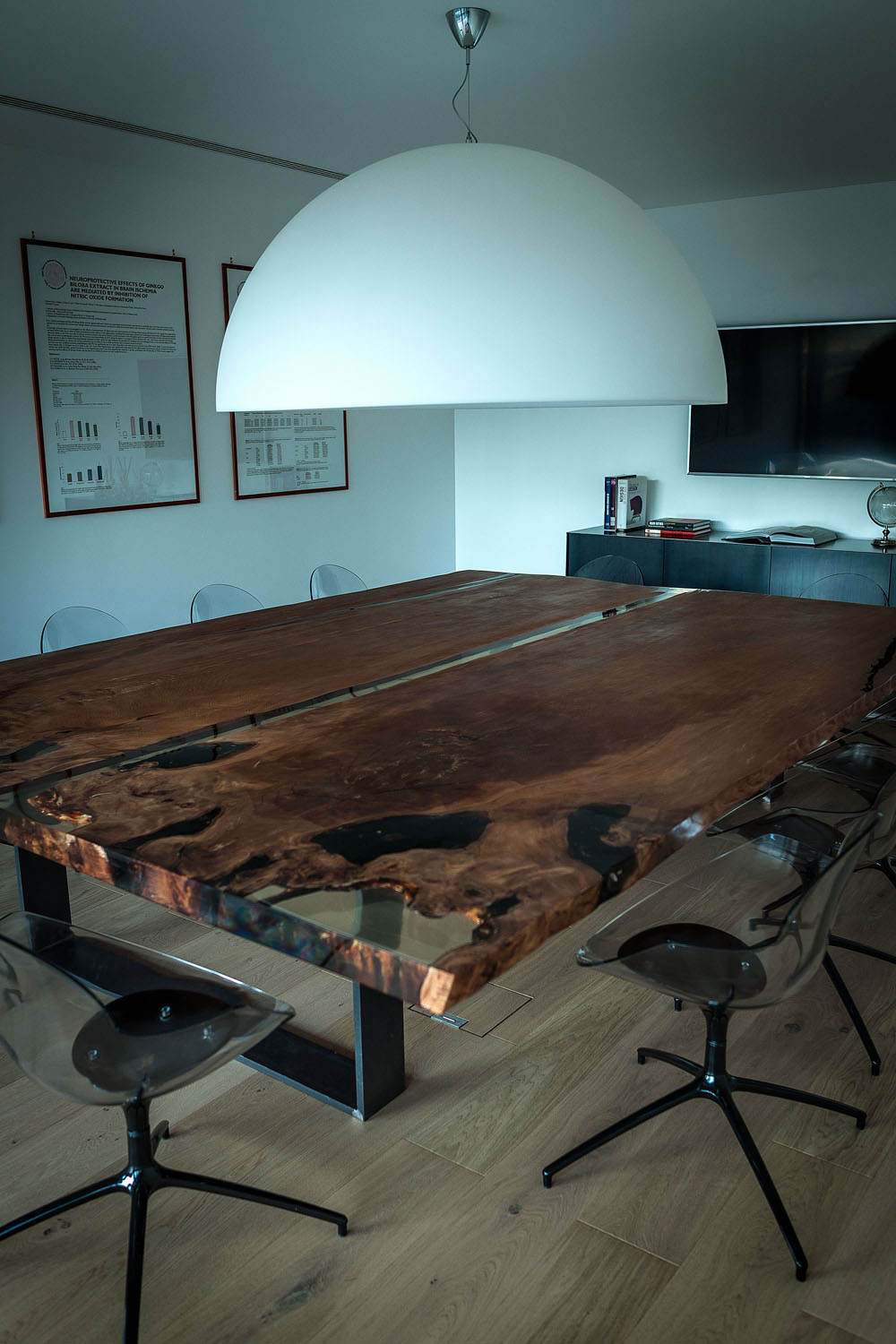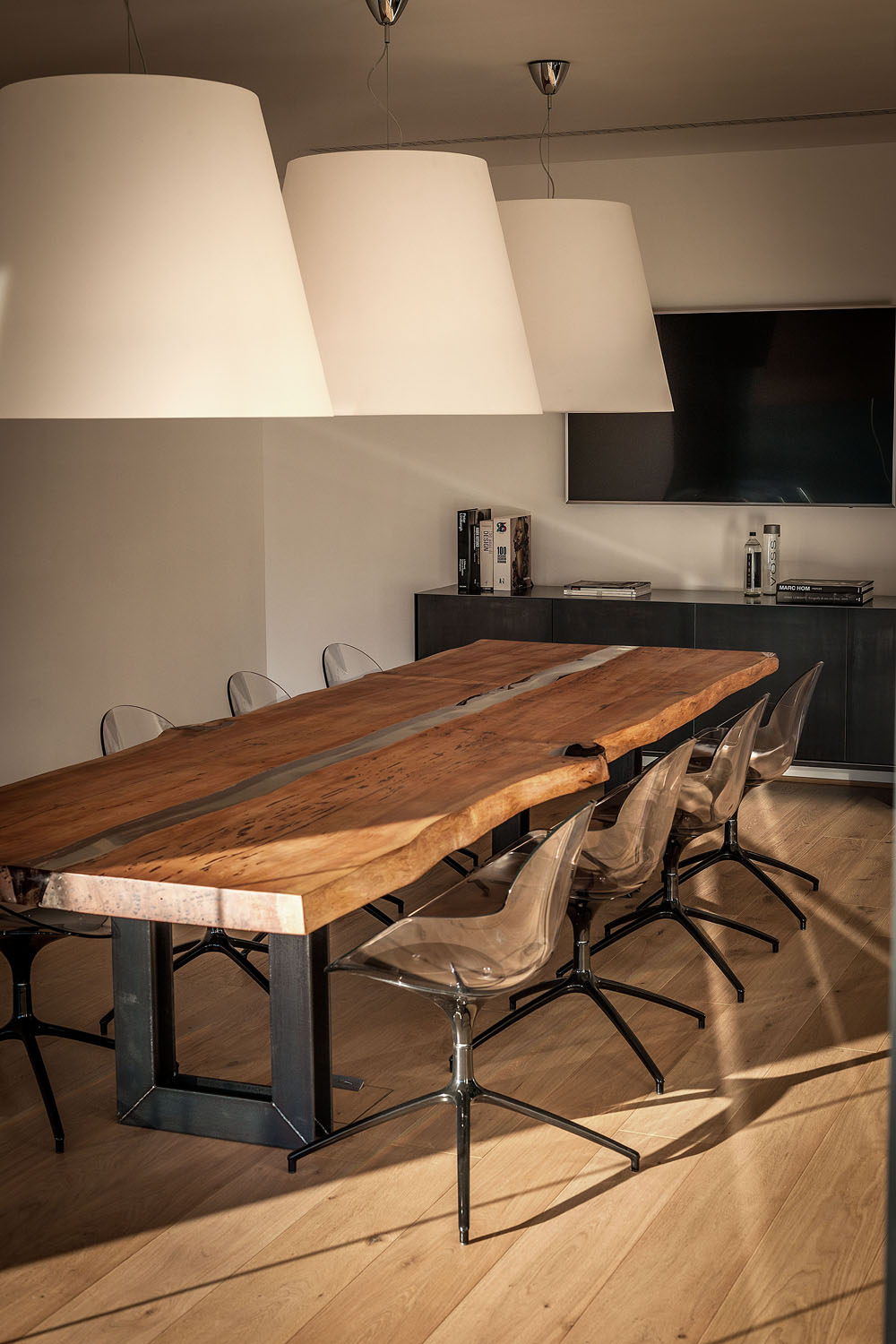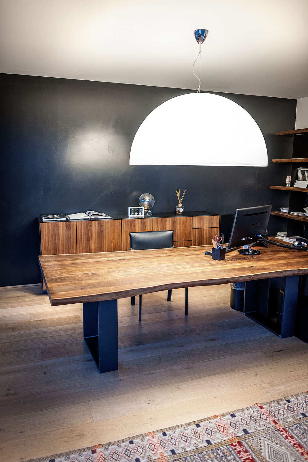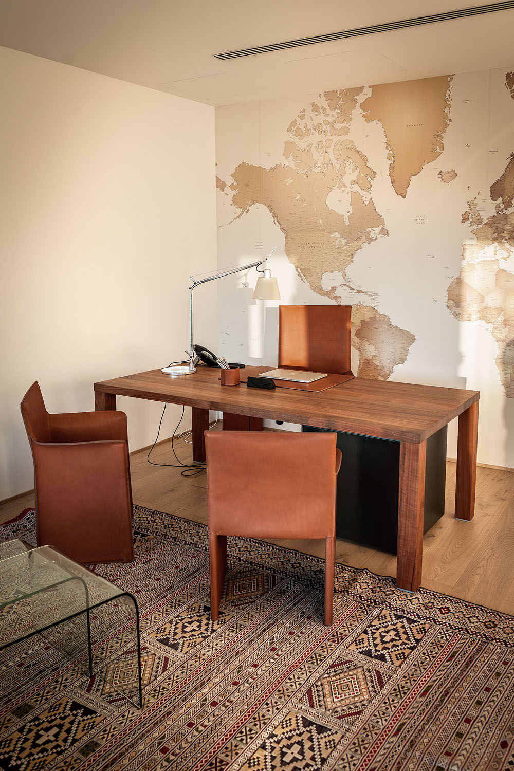 Riva1920 schafft die Einrichtung für die Büros von Pharmalife Research, indem eine exklusive und einzigartige Umgebung durch Tische mit Tischen aus Massivholz oder Holz von großem Wert wie dem tausend Jahre alten Kauri aus Neuseeland, die mit bequemen und ergonomischen Design-Sitzen und kombiniert werden, wiederhergestellt wird Bänke aus libanesischem Zedernholz. An den Wänden fügen sich maßgeschneiderte Regalsysteme mit einem essentiellen und eleganten Design harmonisch in die Räume ein und stellen Lösungen dar, die für die Aufnahme von Büromaterial geeignet sind, ohne das Design und die Ästhetik aus den Augen zu verlieren.