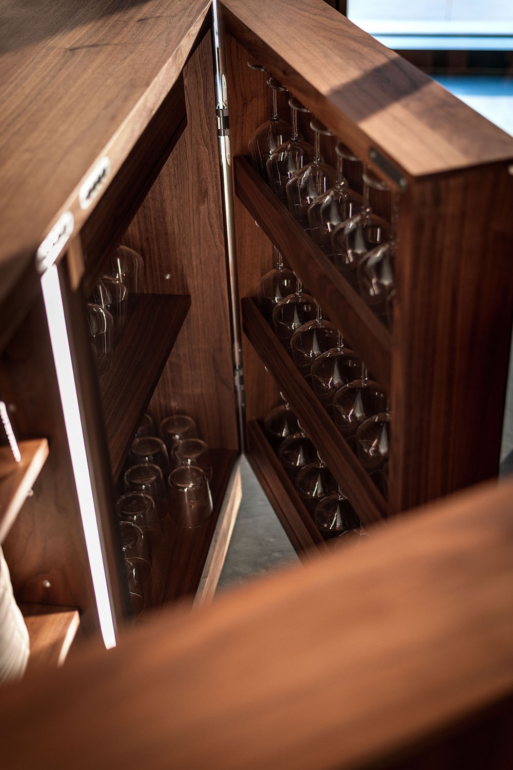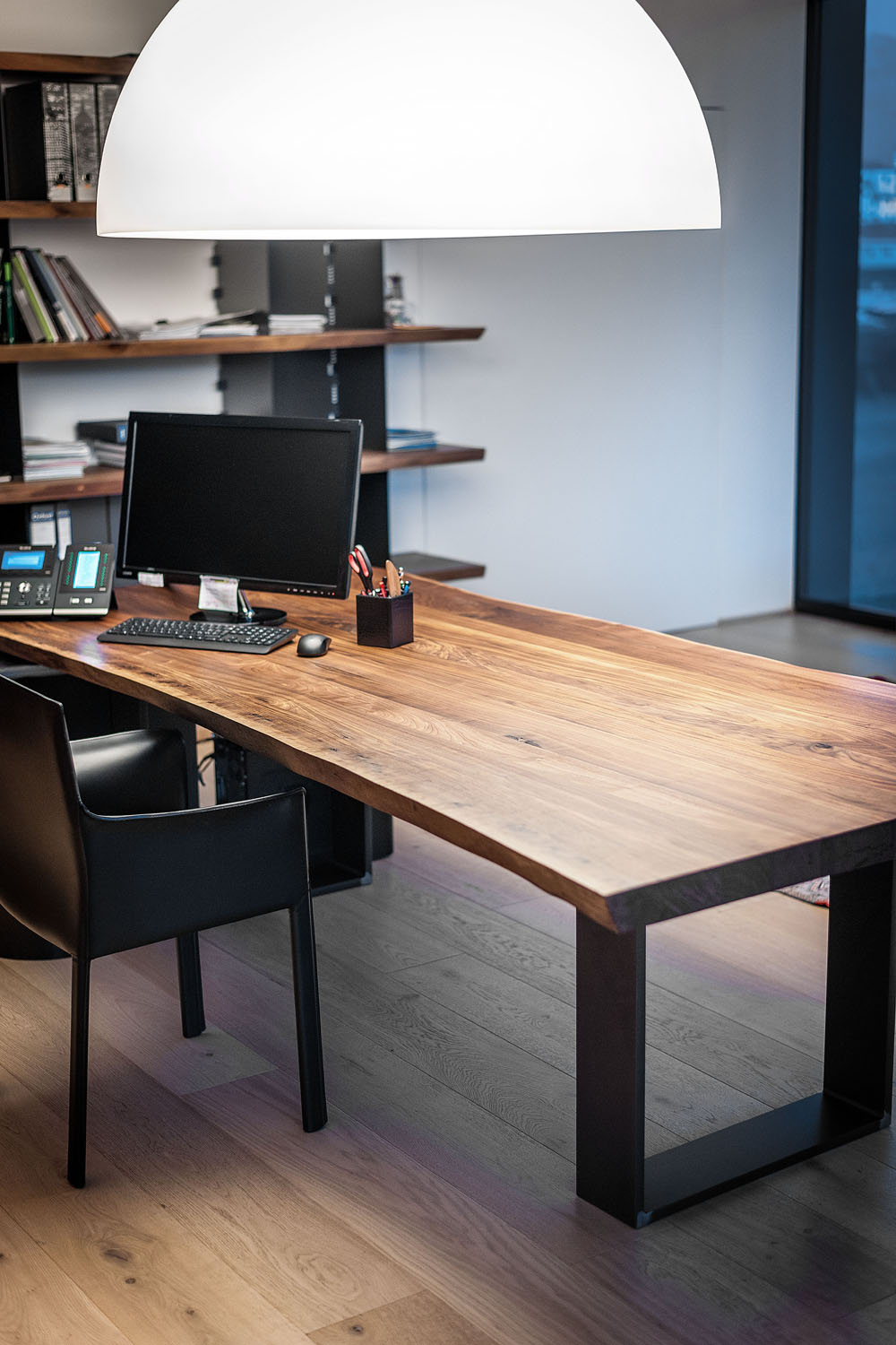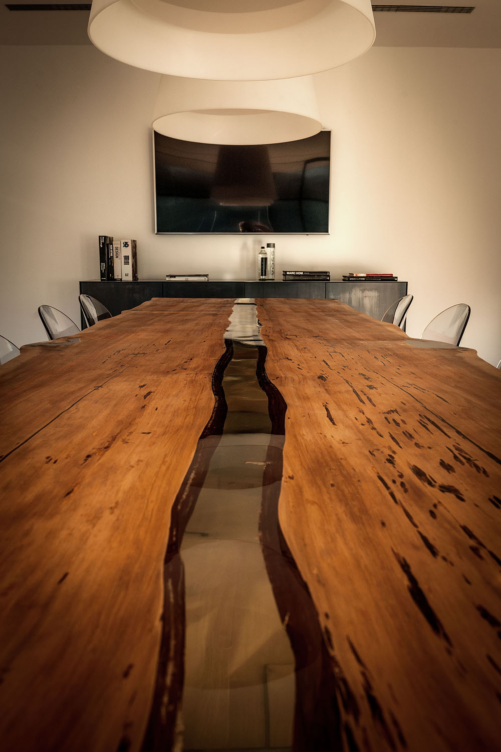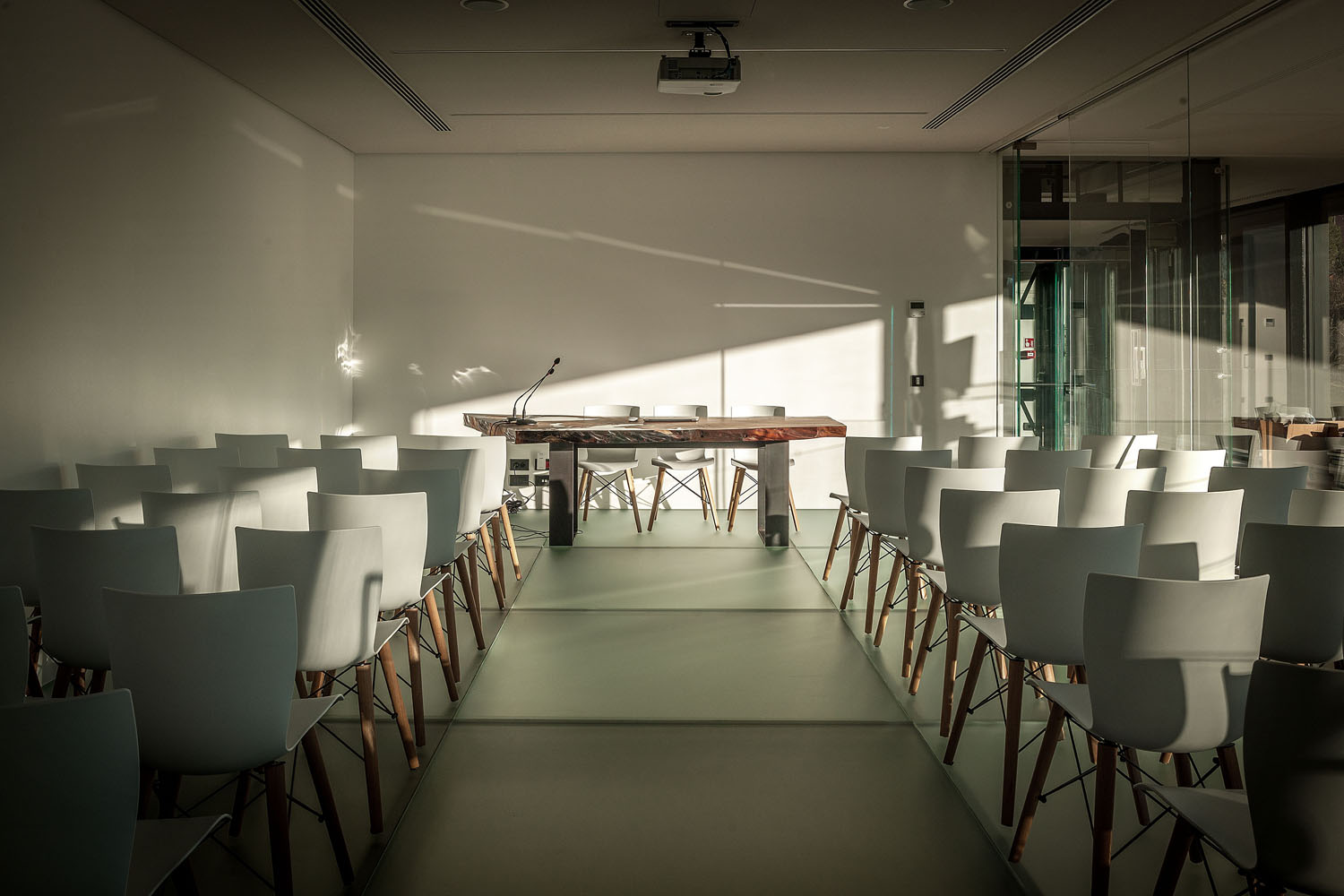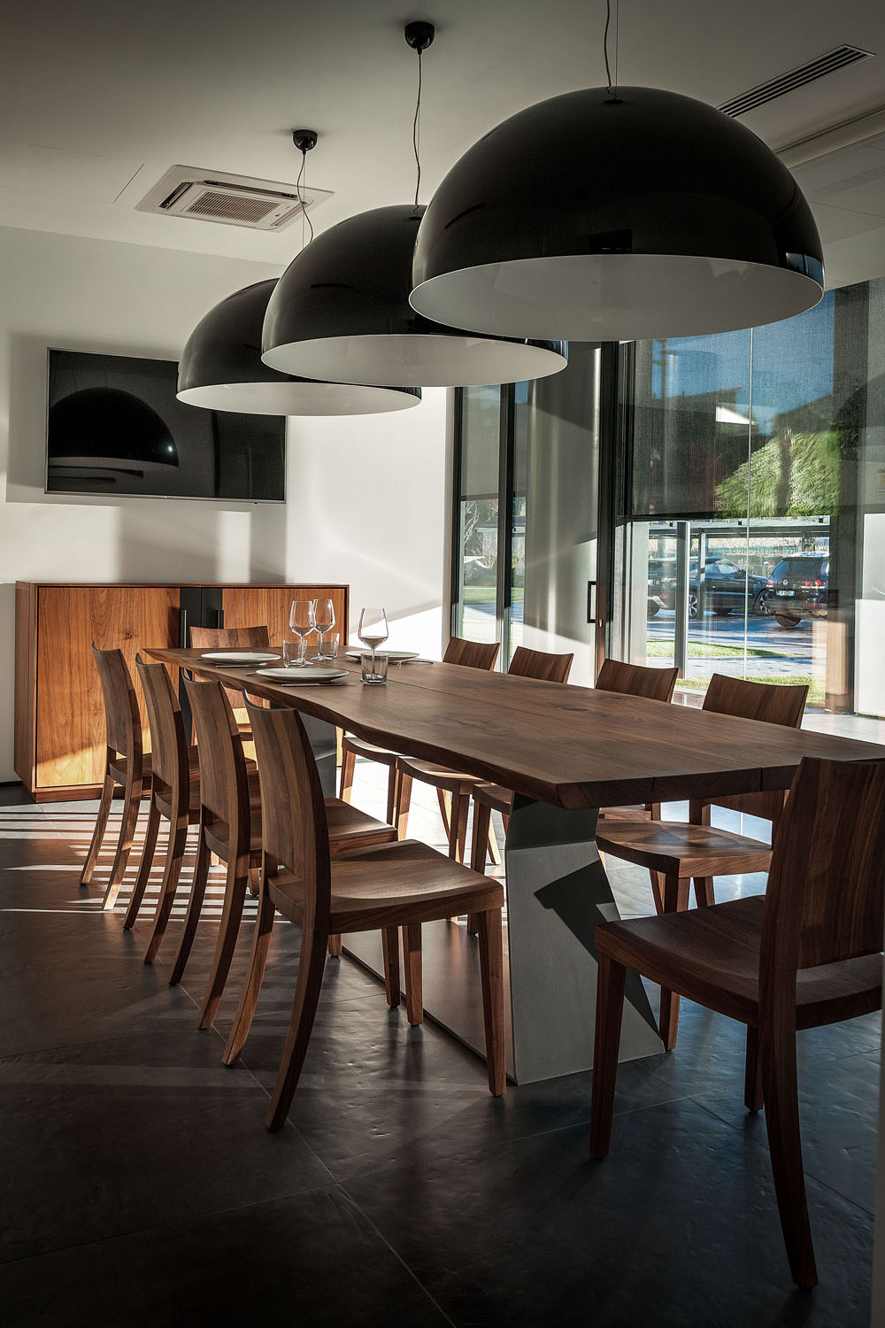 Riva1920 schafft die Einrichtung für die Büros von Pharmalife Research, indem eine exklusive und einzigartige Umgebung durch Tische mit Tischen aus Massivholz oder Holz von großem Wert wie dem tausend Jahre alten Kauri aus Neuseeland, die mit bequemen und ergonomischen Design-Sitzen und kombiniert werden, wiederhergestellt wird Bänke aus libanesischem Zedernholz. An den Wänden fügen sich maßgeschneiderte Regalsysteme mit einem essentiellen und eleganten Design harmonisch in die Räume ein und stellen Lösungen dar, die für die Aufnahme von Büromaterial geeignet sind, ohne das Design und die Ästhetik aus den Augen zu verlieren.