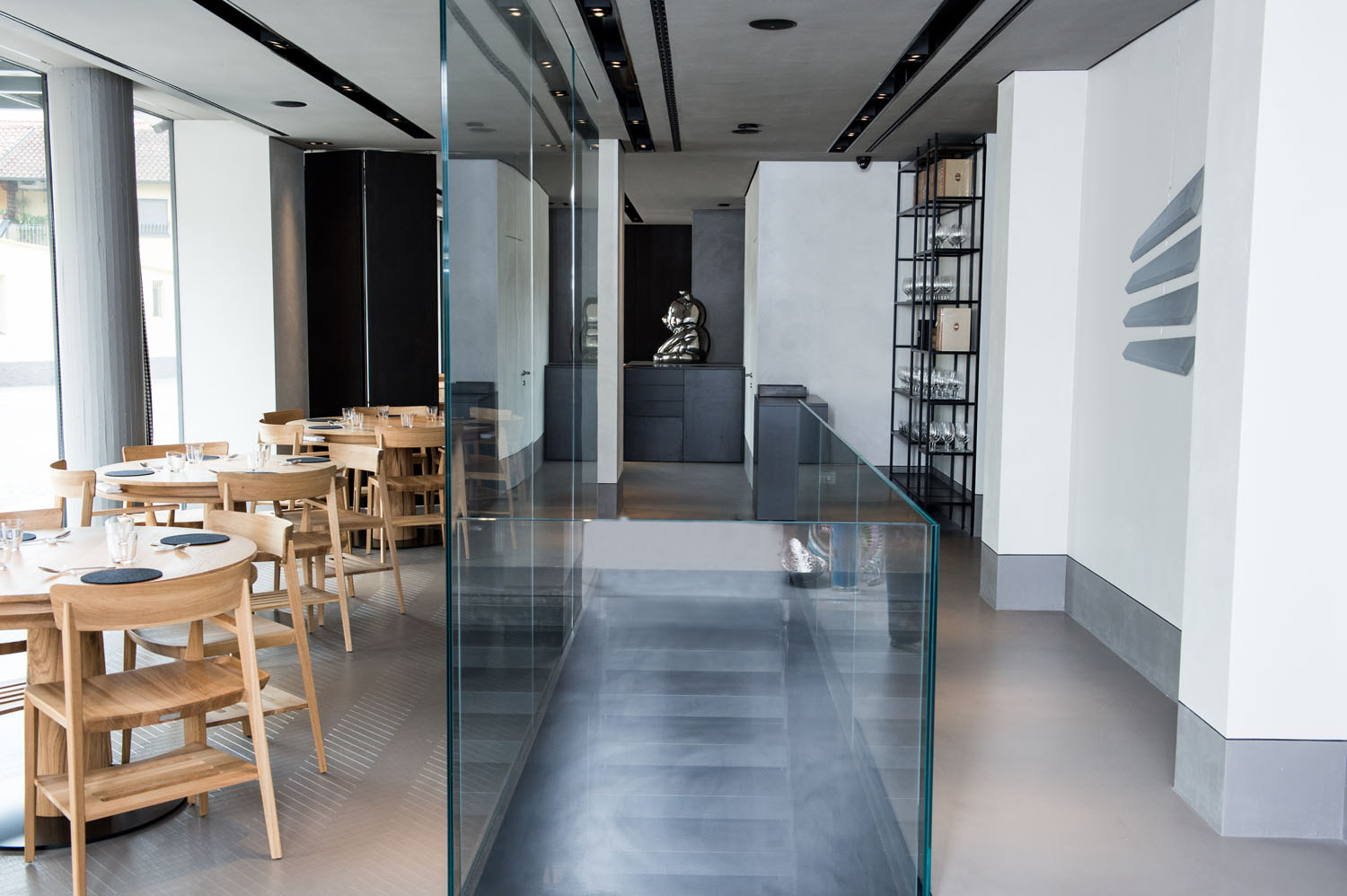 Das neue D'O Restaurant von Davide Oldani neben dem alten D'O di Cornaredo ist für die Öffentlichkeit zugänglich und komplett renoviert. Das Layout wurde entworfen, um ein Erlebnis zu bieten, das die Barrieren zwischen Küche und Esszimmer, zwischen Küchenchef und Gästen aufhebt. Tische und Stühle wurden von Oldani selbst entworfen, der in Zusammenarbeit mit Riva1920 und einem präzisen, maßgeschneiderten De-signstudio sieht, wie seine Ideen Gestalt annehmen. Ulmenholz aus kontrollierten Schnittbereichen zur Herstellung wesentlicher, linearer, funktionaler Möbel und ergono-mischer Sitze für Komfort am Tisch, alles nur von Hand mit Vinylklebern, Ölen und na-türlichen Wachsen: etwas Einzigartiges und zeitlos, dazu bestimmt, aufzufallen.
