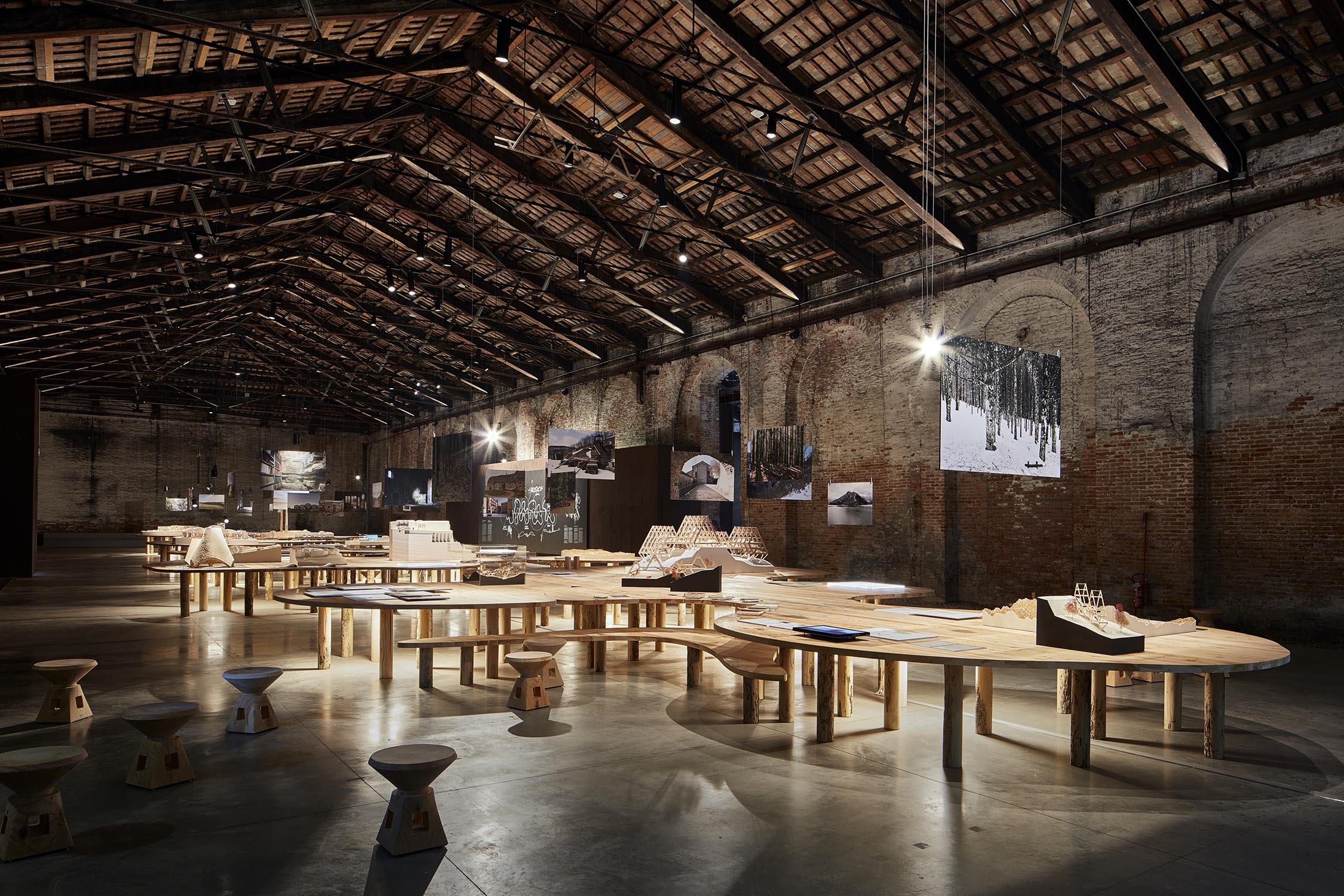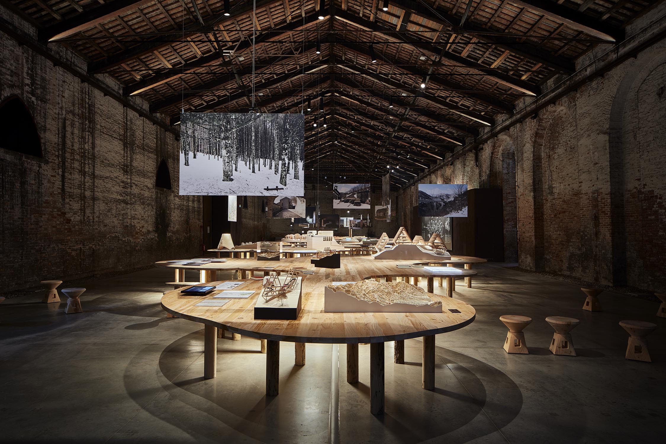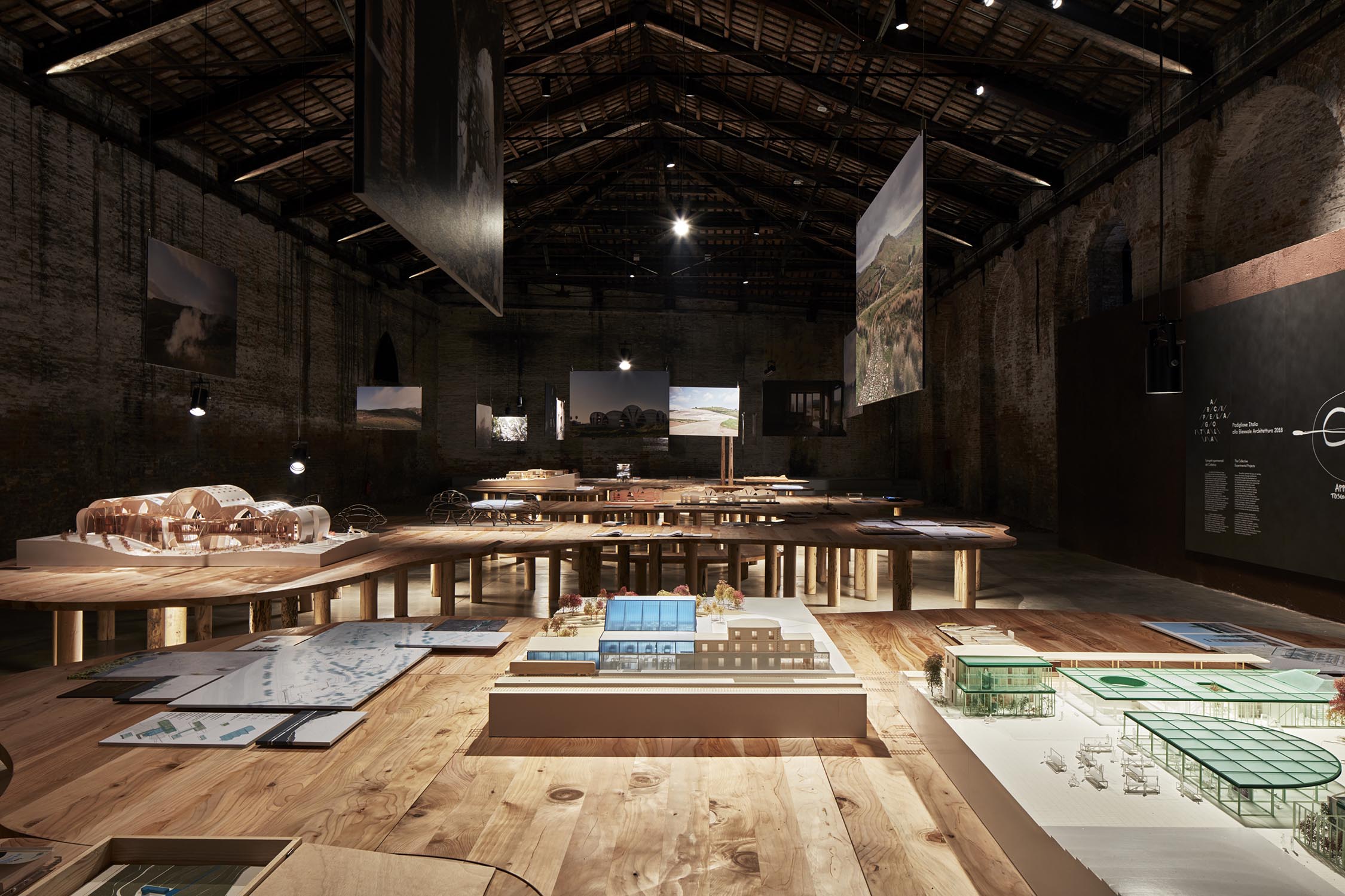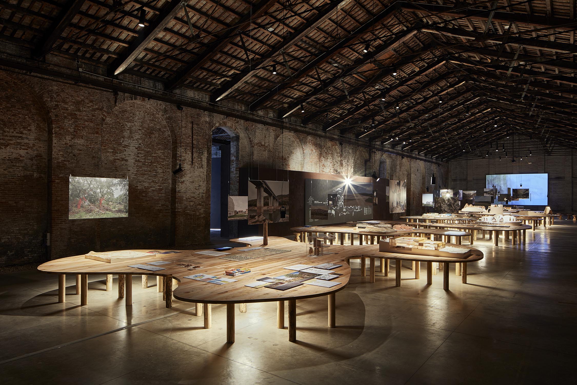 Anlässlich der 16. Internationalen Architekturausstellung der Biennale von Venedig, die von Mario Cucinella im Jahr 2018 im eindrucksvollen Rahmen von Venedig kuratiert wurde, organisiert Riva 5 Tische auf 5 Tischen für das Projekt von Arch neu. Mario Cucinella durch die ausschließliche Verwendung von Klebstoffen, Wachsen und natürlichen Ölen in Kombination mit einem nachhaltigen Design, bei dem wiederverwendete Hölzer wie Briccole und die duftende Zeder von Libanon verwendet werden. Arcipelago hat fünf Inseln, die sich durch gewundene Formen entwickeln, die in das Holz gepresst werden und eine Gesamtfläche von 246 Quadratmetern mit über 13 Kubikmetern Rohmaterial umfassen. Für die Gipfel wurde die Zeder des Libanon verwendet, große Bäume aus Norditalien fielen aufgrund von Erdrutschen, klimatischen Ereignissen oder geplanten Schnitten. Zur Unterstützung der Tische 321 Beine aus Briccola-Holz, stillgelegte Pfählen der Lagune von Venedig.