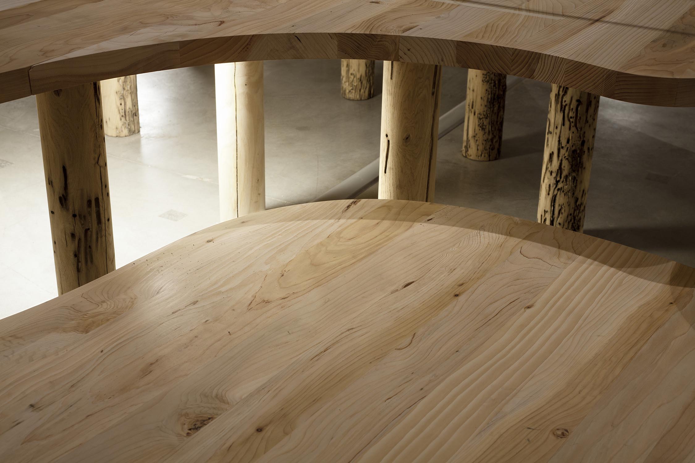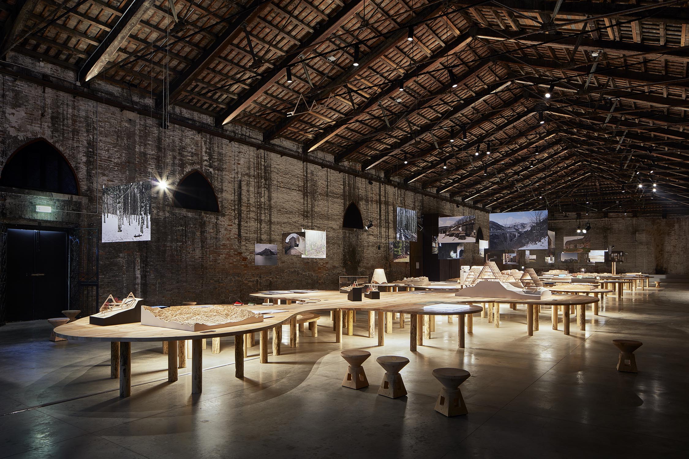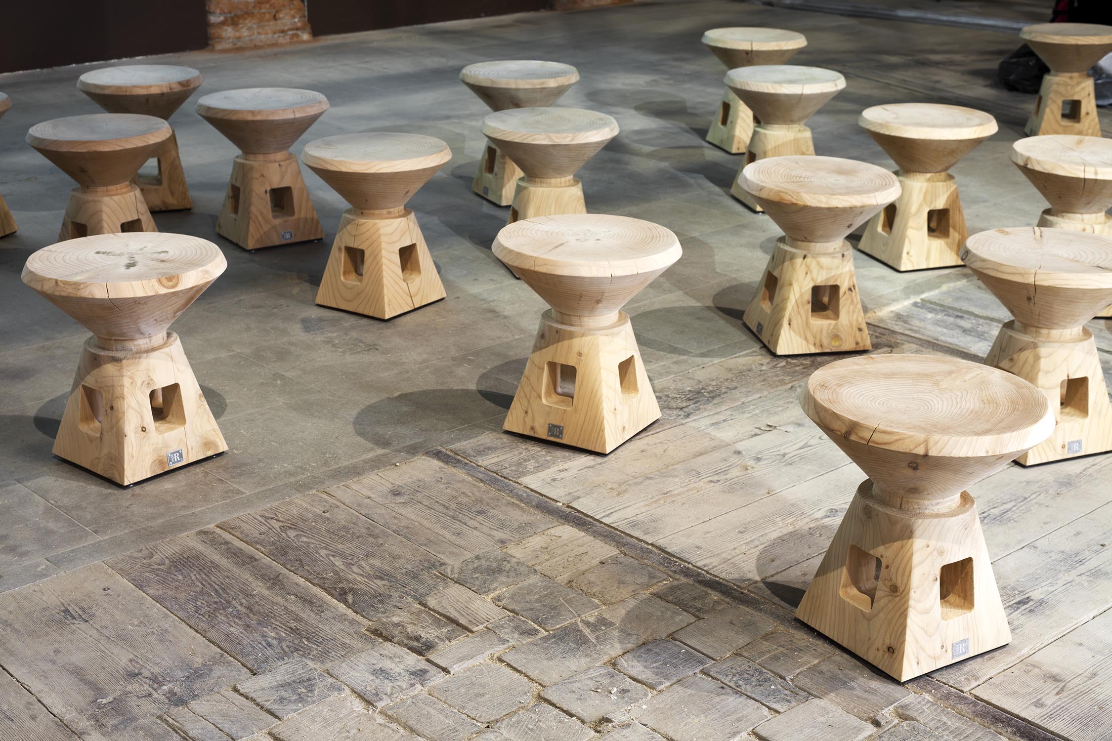 Anlässlich der 16. Internationalen Architekturausstellung der Biennale von Venedig, die von Mario Cucinella im Jahr 2018 im eindrucksvollen Rahmen von Venedig kuratiert wurde, organisiert Riva 5 Tische auf 5 Tischen für das Projekt von Arch neu. Mario Cucinella durch die ausschließliche Verwendung von Klebstoffen, Wachsen und natürlichen Ölen in Kombination mit einem nachhaltigen Design, bei dem wiederverwendete Hölzer wie Briccole und die duftende Zeder von Libanon verwendet werden. Arcipelago hat fünf Inseln, die sich durch gewundene Formen entwickeln, die in das Holz gepresst werden und eine Gesamtfläche von 246 Quadratmetern mit über 13 Kubikmetern Rohmaterial umfassen. Für die Gipfel wurde die Zeder des Libanon verwendet, große Bäume aus Norditalien fielen aufgrund von Erdrutschen, klimatischen Ereignissen oder geplanten Schnitten. Zur Unterstützung der Tische 321 Beine aus Briccola-Holz, stillgelegte Pfählen der Lagune von Venedig.