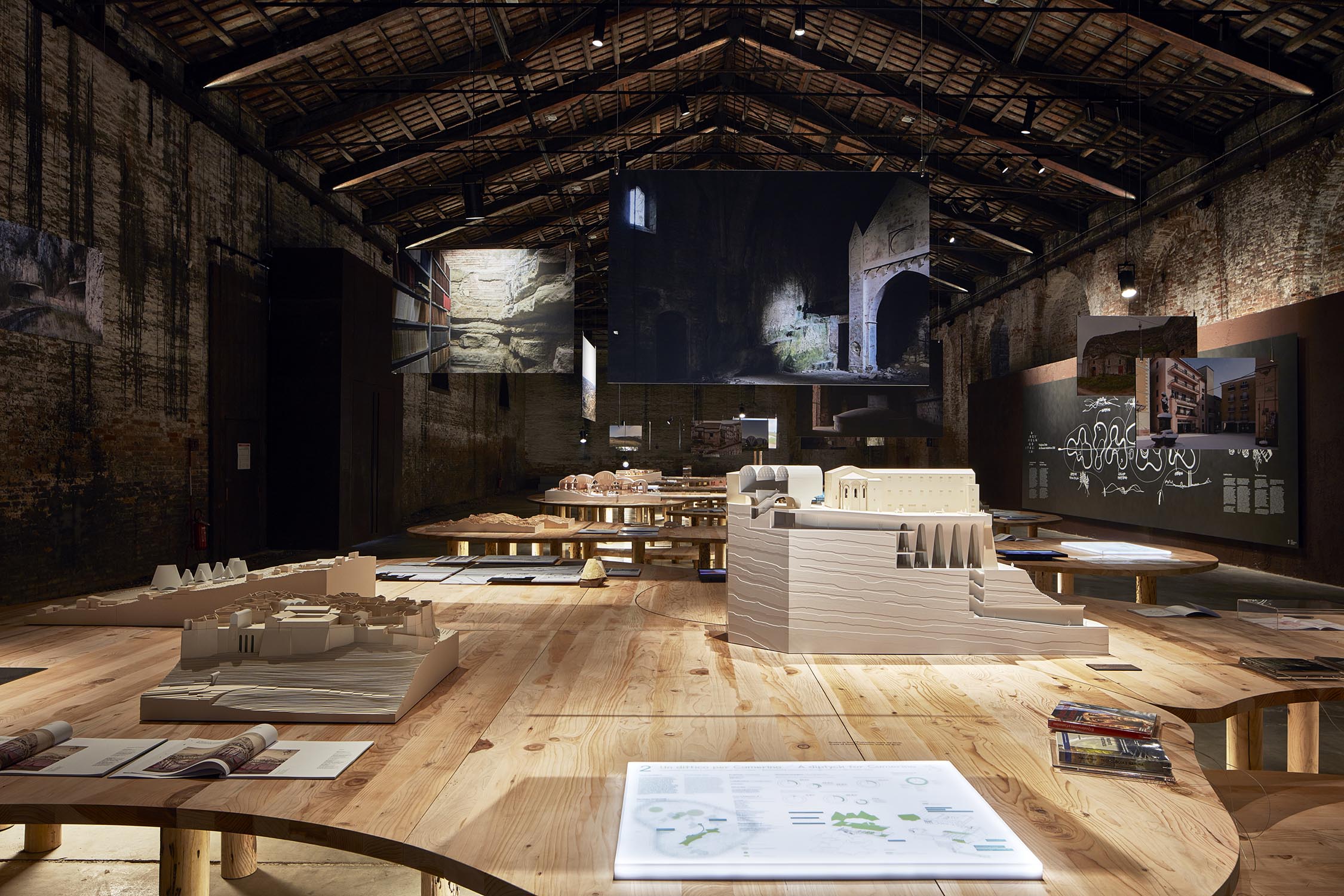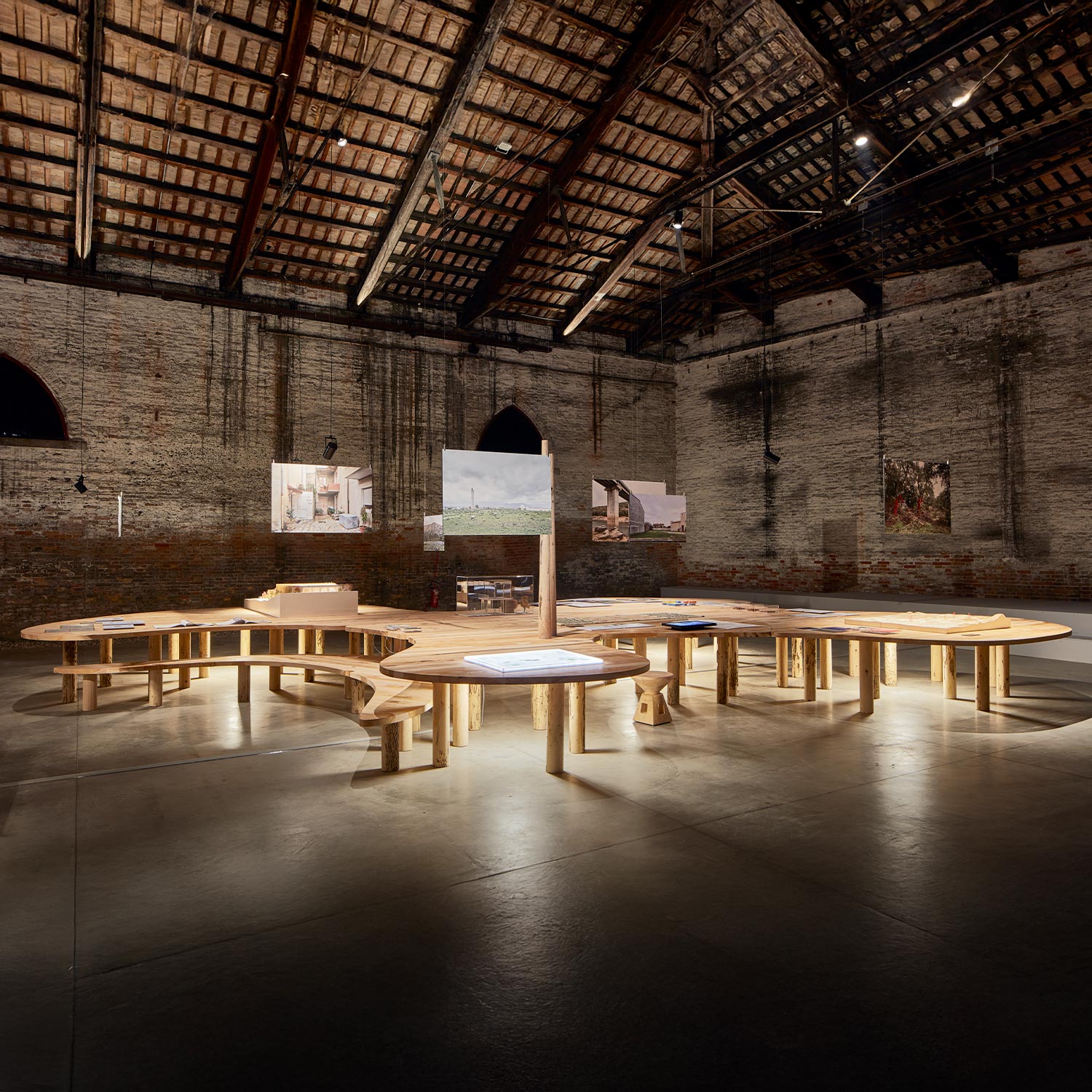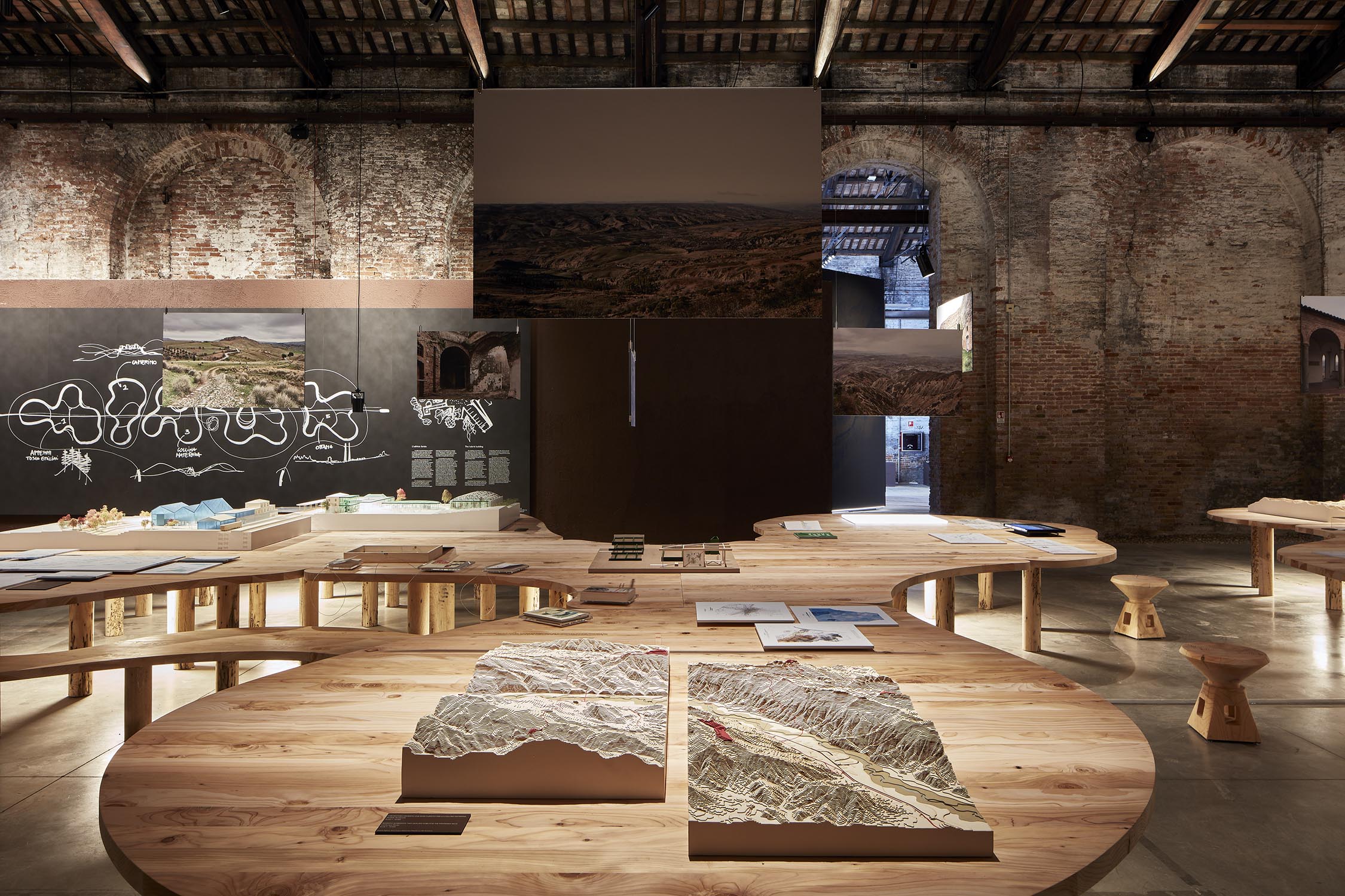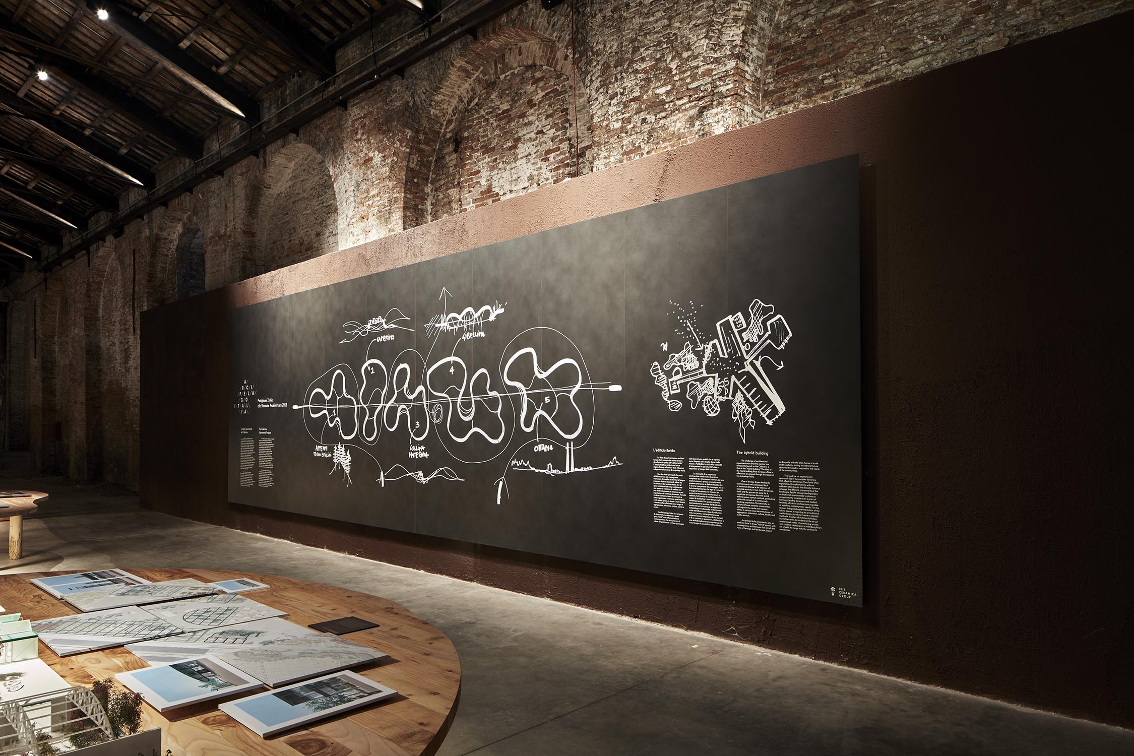 Anlässlich der 16. Internationalen Architekturausstellung der Biennale von Venedig, die von Mario Cucinella im Jahr 2018 im eindrucksvollen Rahmen von Venedig kuratiert wurde, organisiert Riva 5 Tische auf 5 Tischen für das Projekt von Arch neu. Mario Cucinella durch die ausschließliche Verwendung von Klebstoffen, Wachsen und natürlichen Ölen in Kombination mit einem nachhaltigen Design, bei dem wiederverwendete Hölzer wie Briccole und die duftende Zeder von Libanon verwendet werden. Arcipelago hat fünf Inseln, die sich durch gewundene Formen entwickeln, die in das Holz gepresst werden und eine Gesamtfläche von 246 Quadratmetern mit über 13 Kubikmetern Rohmaterial umfassen. Für die Gipfel wurde die Zeder des Libanon verwendet, große Bäume aus Norditalien fielen aufgrund von Erdrutschen, klimatischen Ereignissen oder geplanten Schnitten. Zur Unterstützung der Tische 321 Beine aus Briccola-Holz, stillgelegte Pfählen der Lagune von Venedig.