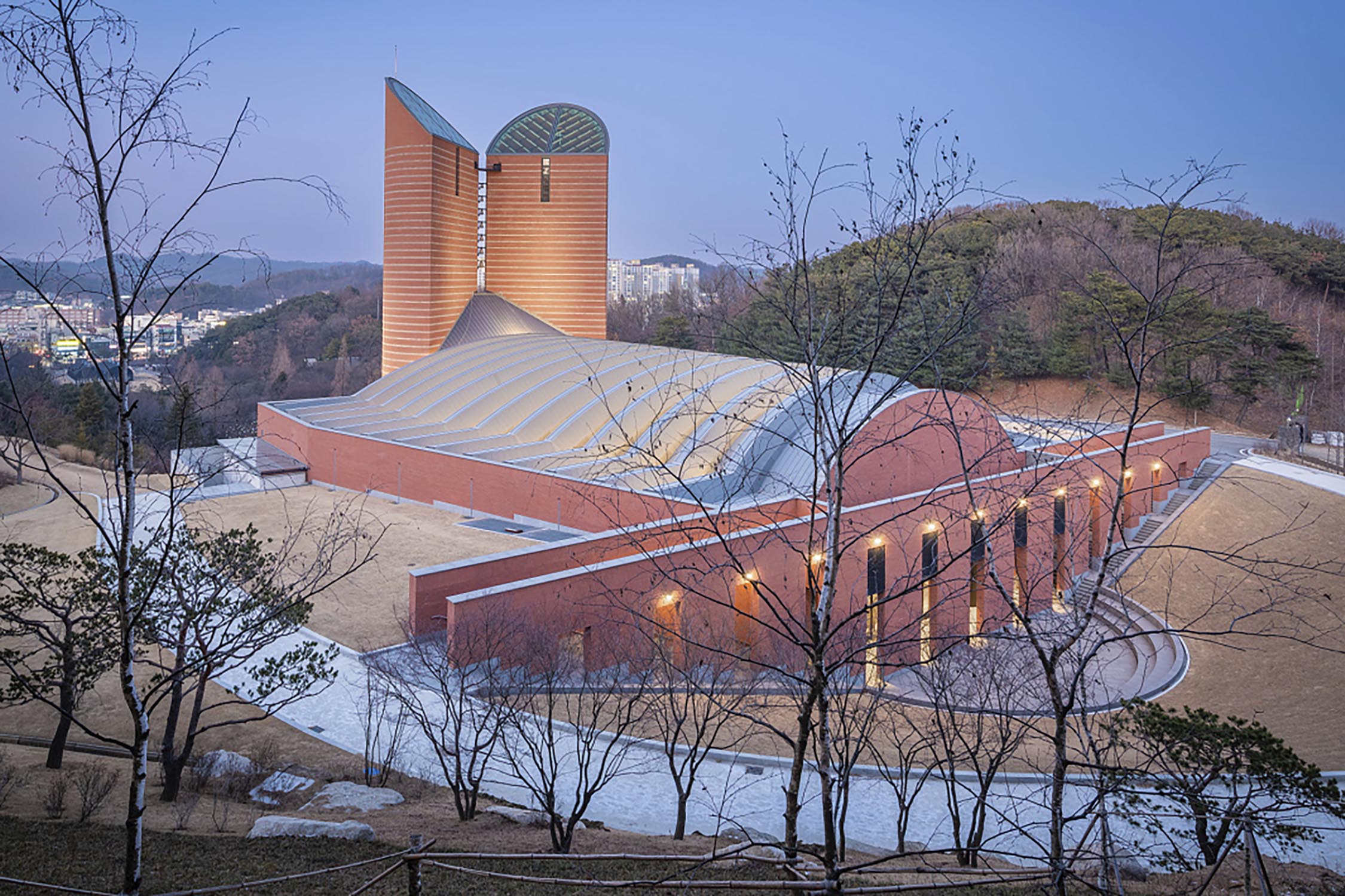 Das Gotteshaus befindet sich in einem heiligen Areal, das der Jungfrau vom Rosenkranz gewidmet ist, in der Nähe von Seoul.