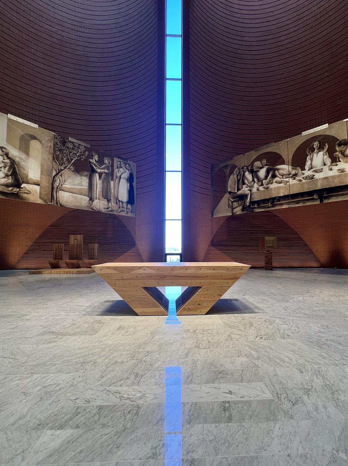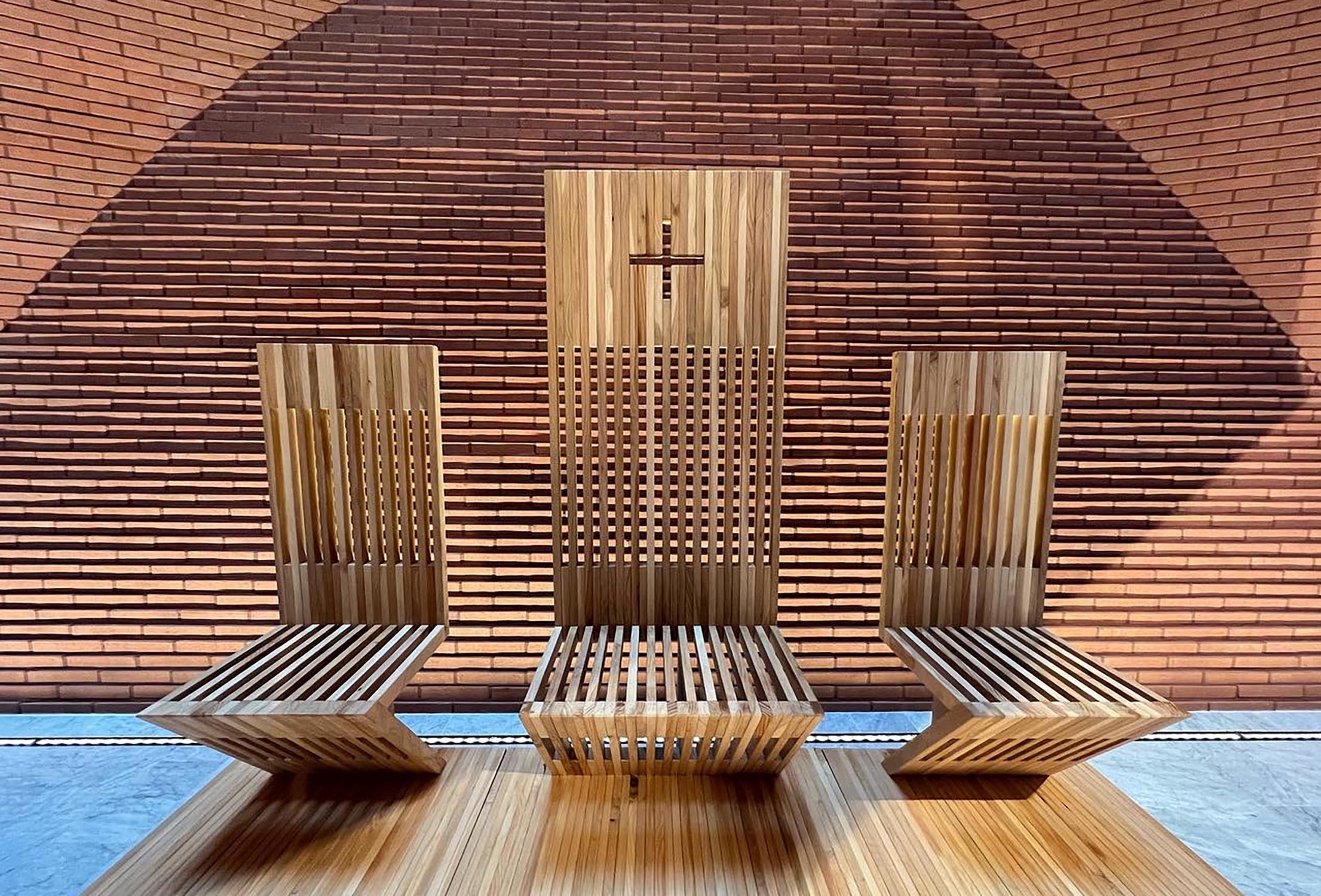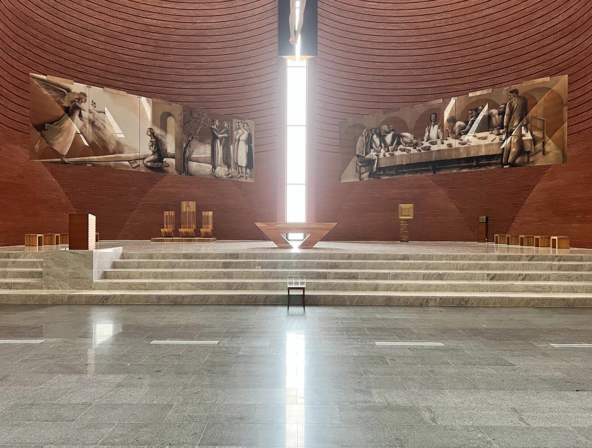 Nach einem Entwurf des Studios Mario Botta Architetti realisierte Riva1920 den Altar, die Sitzgelegenheiten im Presbyteriumsbereich, den Tabernakel sowie das Taufbecken der Kirche.