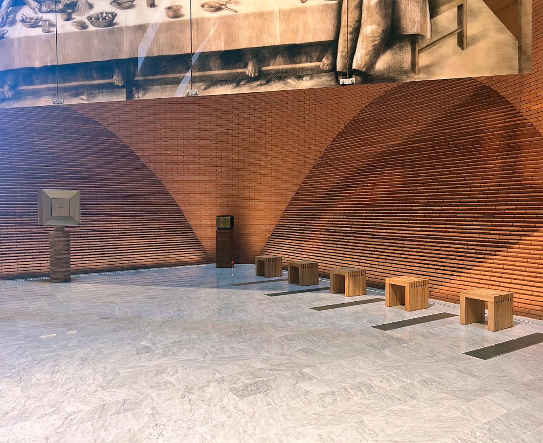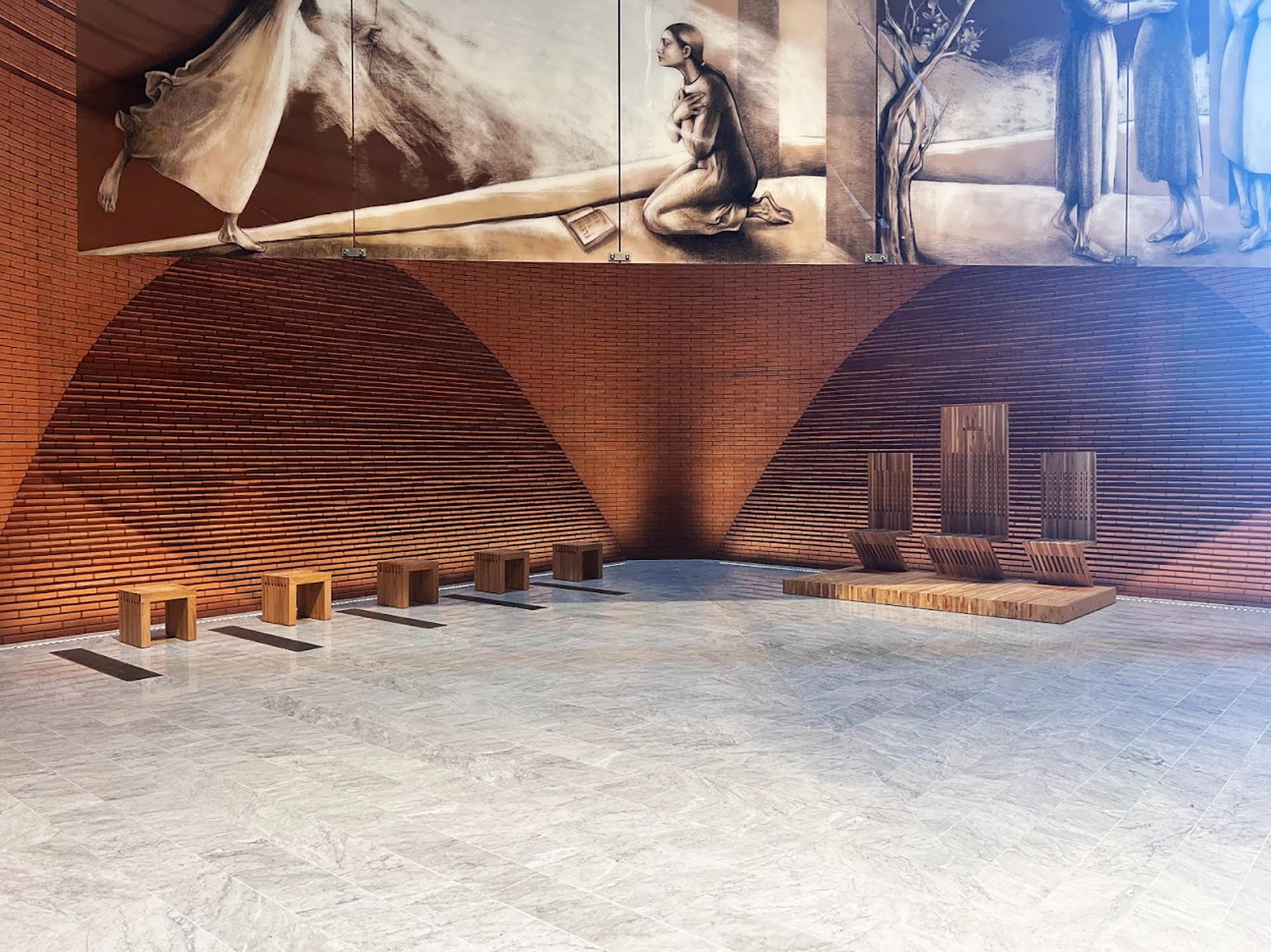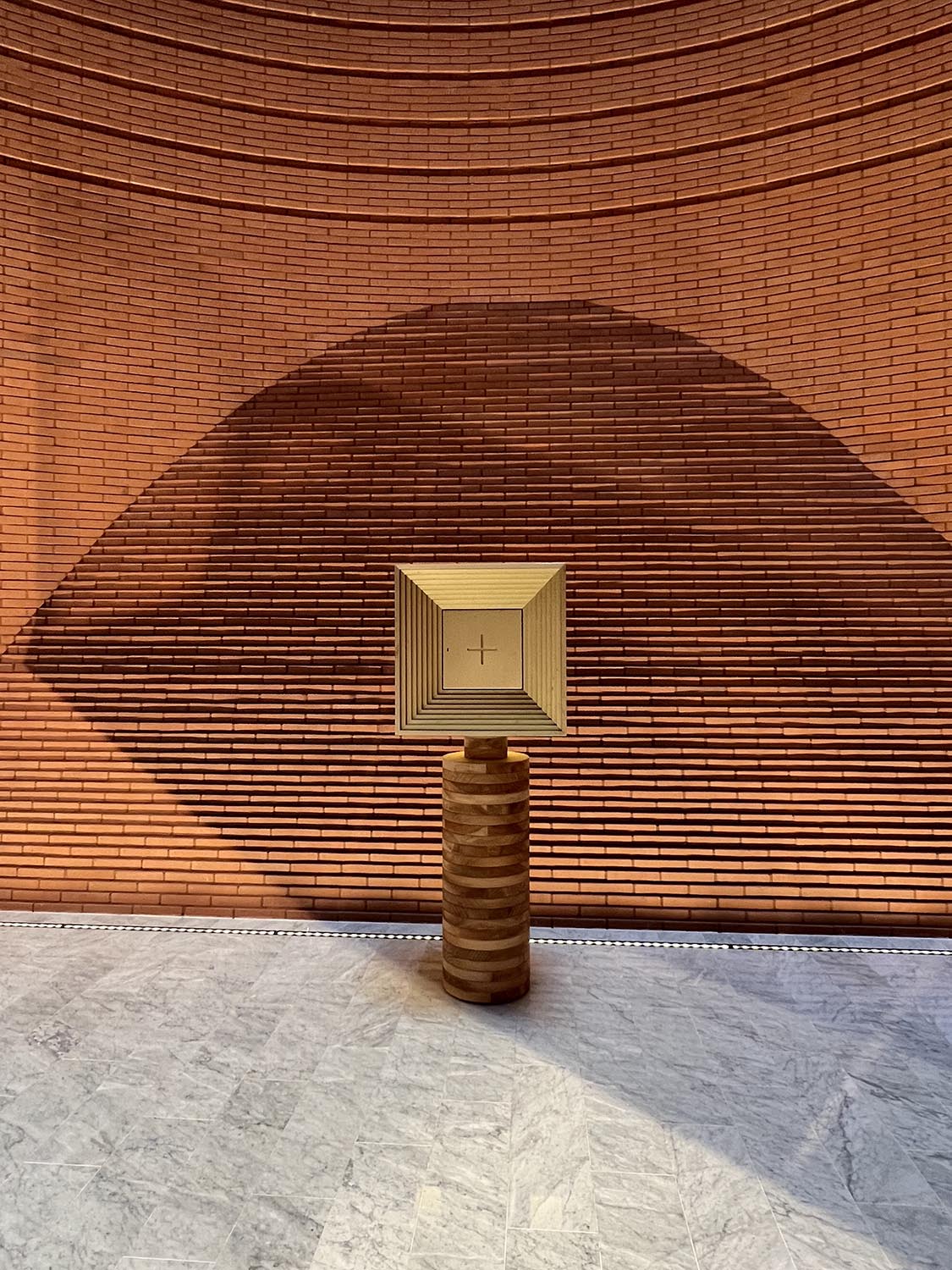 Nach einem Entwurf des Studios Mario Botta Architetti realisierte Riva1920 den Altar, die Sitzgelegenheiten im Presbyteriumsbereich, den Tabernakel sowie das Taufbecken der Kirche.