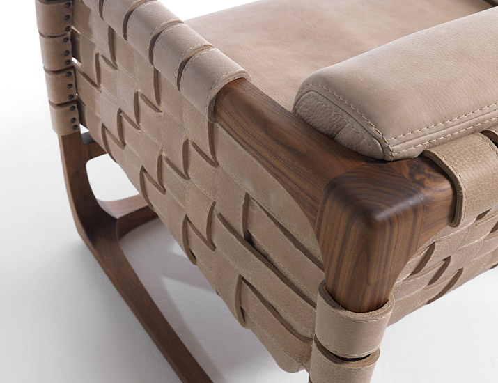 La collection se distingue également par l’utilisation de tissus outdoor hautement résistants, qui complètent l’esthétique raffinée du bois et offrent des solutions confortables et durables.