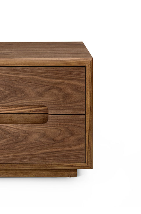design Claudio BelliniLa matérialité du bois massif rencontre des lignes douces et enveloppantes