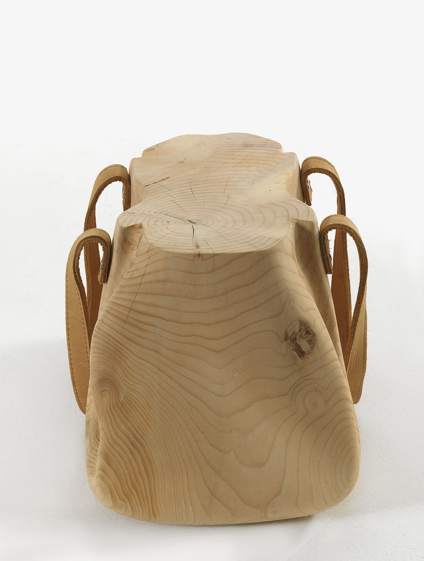Tabouret fabriqué à partir d'un seul bloc de cèdre massif odoriférant, qui s’inspire d’un objet d’usage courant indispensable et si apprécié des femmes : le sac à main.