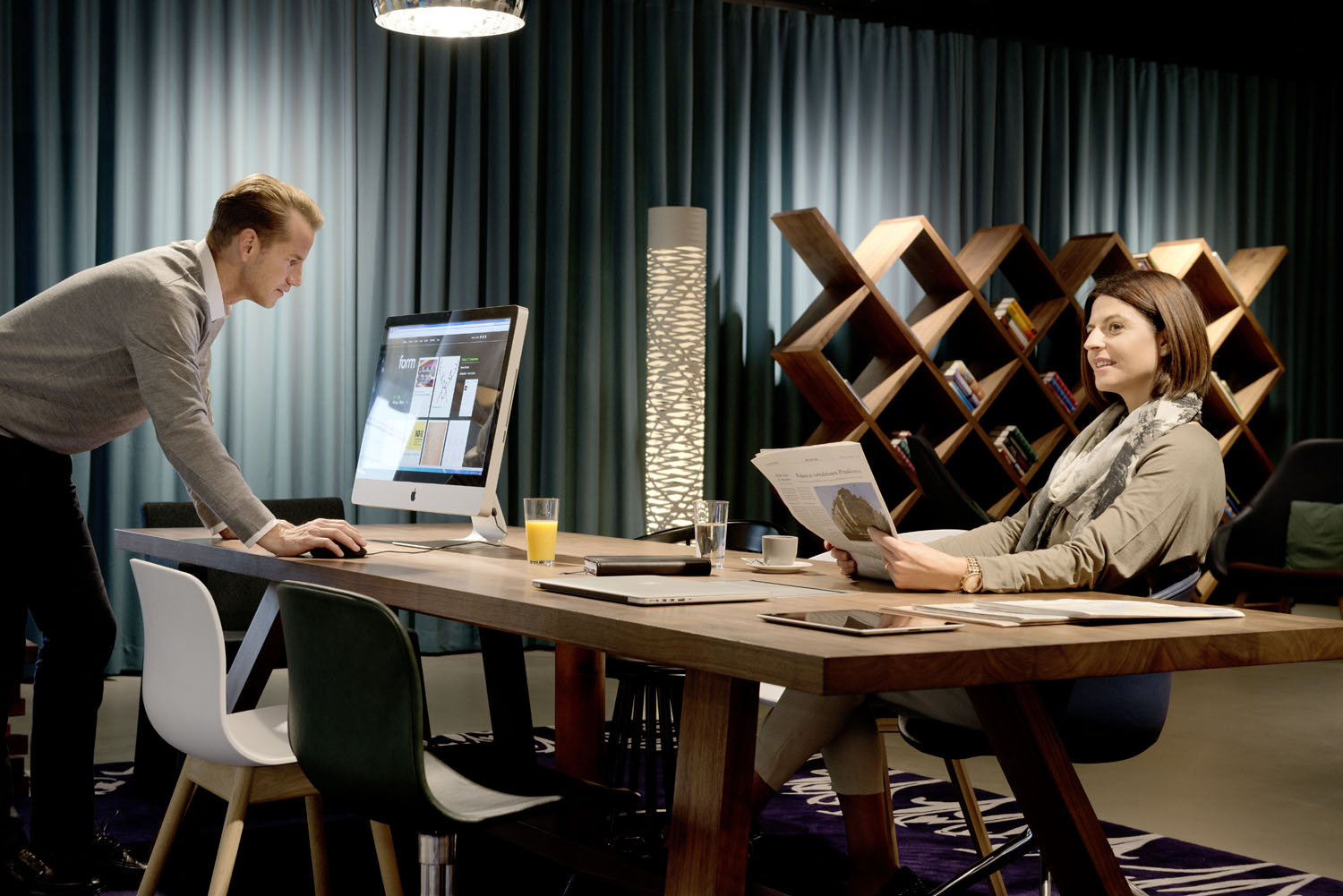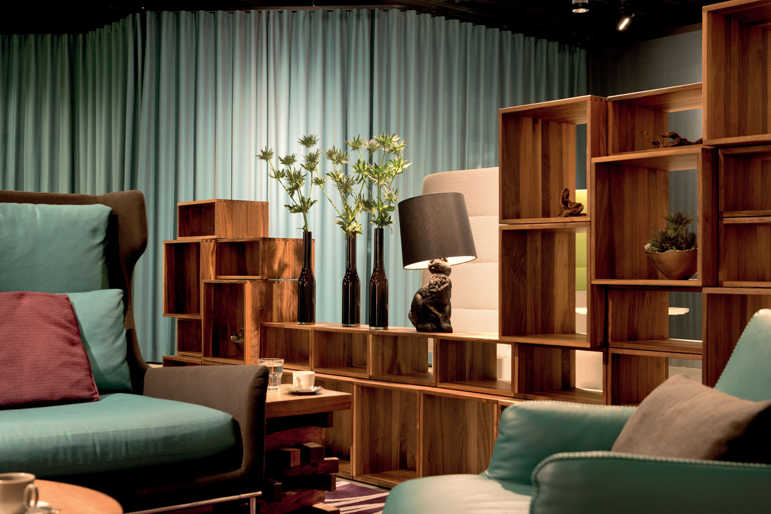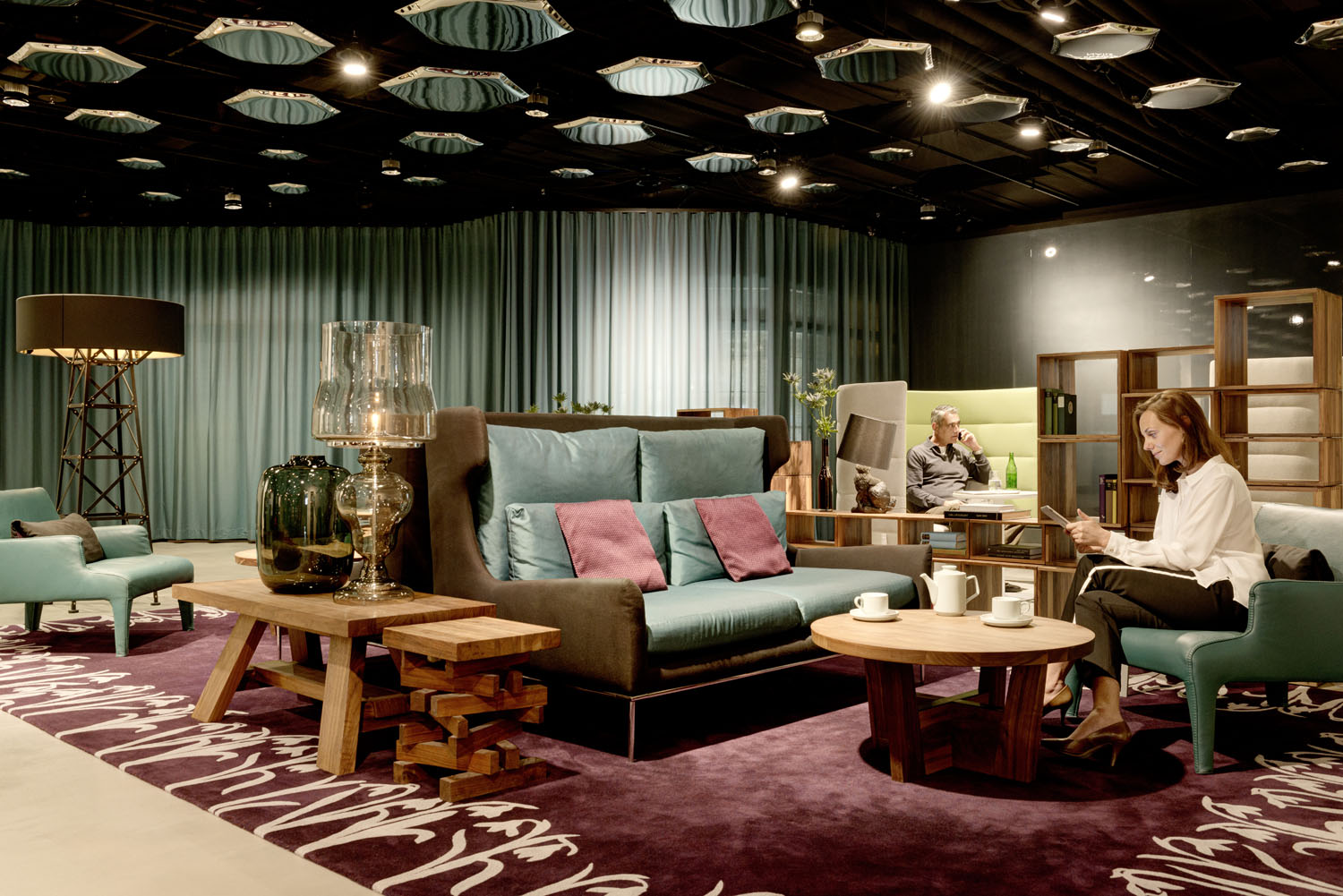 Le Swisshotel Zurich choisit Riva1920 pour l'aménagement du hall : de fines bibliothèques qui se succèdent et s'entrelacent dans un jeu de pleins et de vides et se fondent harmonieusement avec des fauteuils très confortables et des tables design pour recréer des postes de travail ou des espaces pour des moments de détente ou de convivialité dans un cadre environnement accueillant, élégant et raffiné.