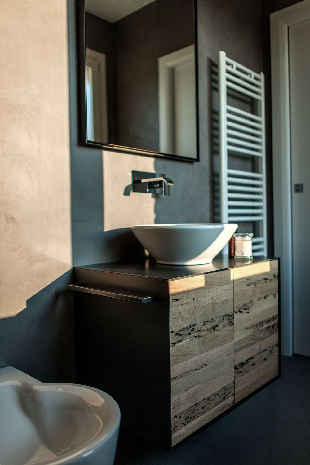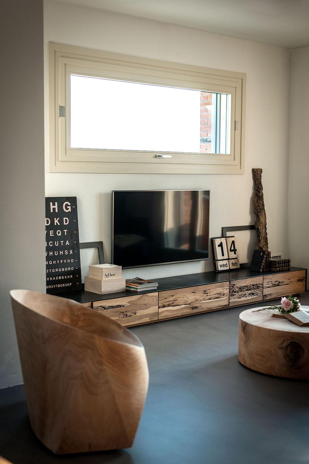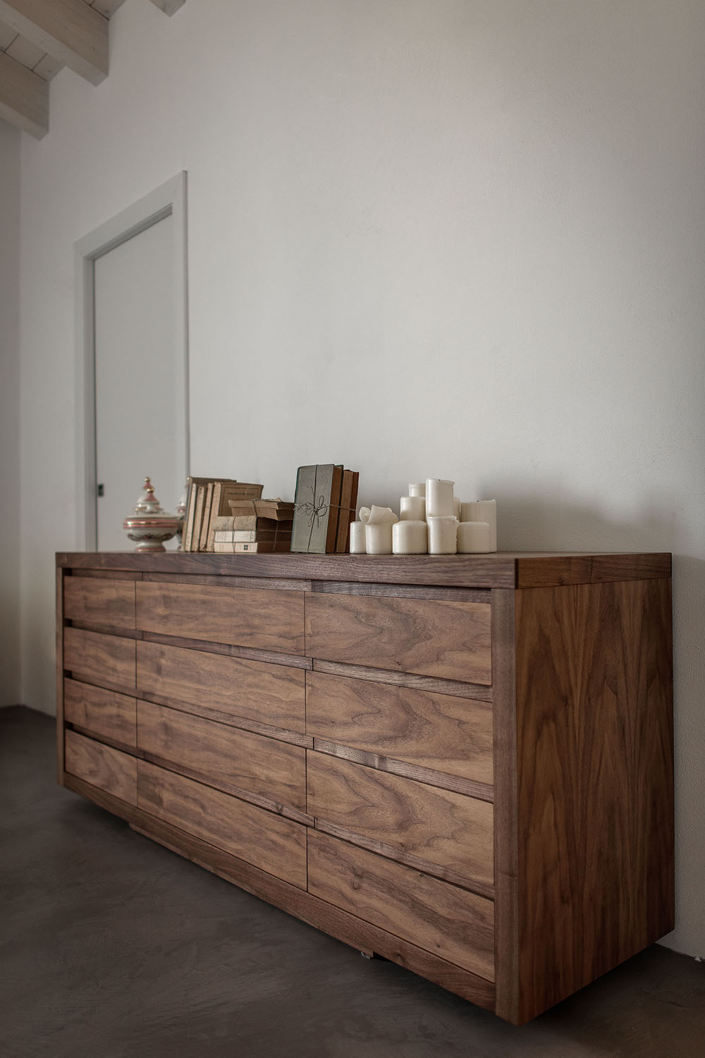 Des lignes essentielles et harmonieuses s'unissent et personnalisent les espaces de manière fonctionnelle et sobre, en commençant par la cuisine, fabriquée en bois massif et finie à la main avec des huiles naturelles, le cœur battant de la maison où l'on se retrouve pour d'agréables moments de convivialité, puis de la salle de séjour et de la salle de bains, embellies par la touche raffinée des Briccole di Venezia, du bois de récuperation provenant de poteaux désaffectés de la lagune vénitienne, et enfin de la chambre à coucher qui dispose d'un dressing spacieux et organisé en bois de cèdre du Liban odoriférant, pour contenir et ranger vos vêtements. Il n'y a pas de limites à vos besoins en matière d'ameublement !