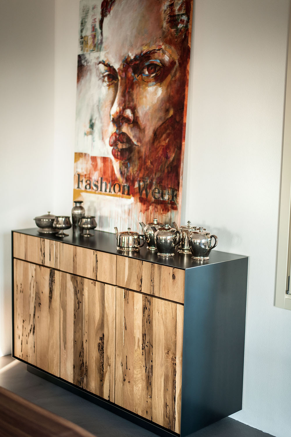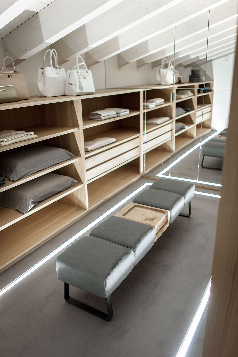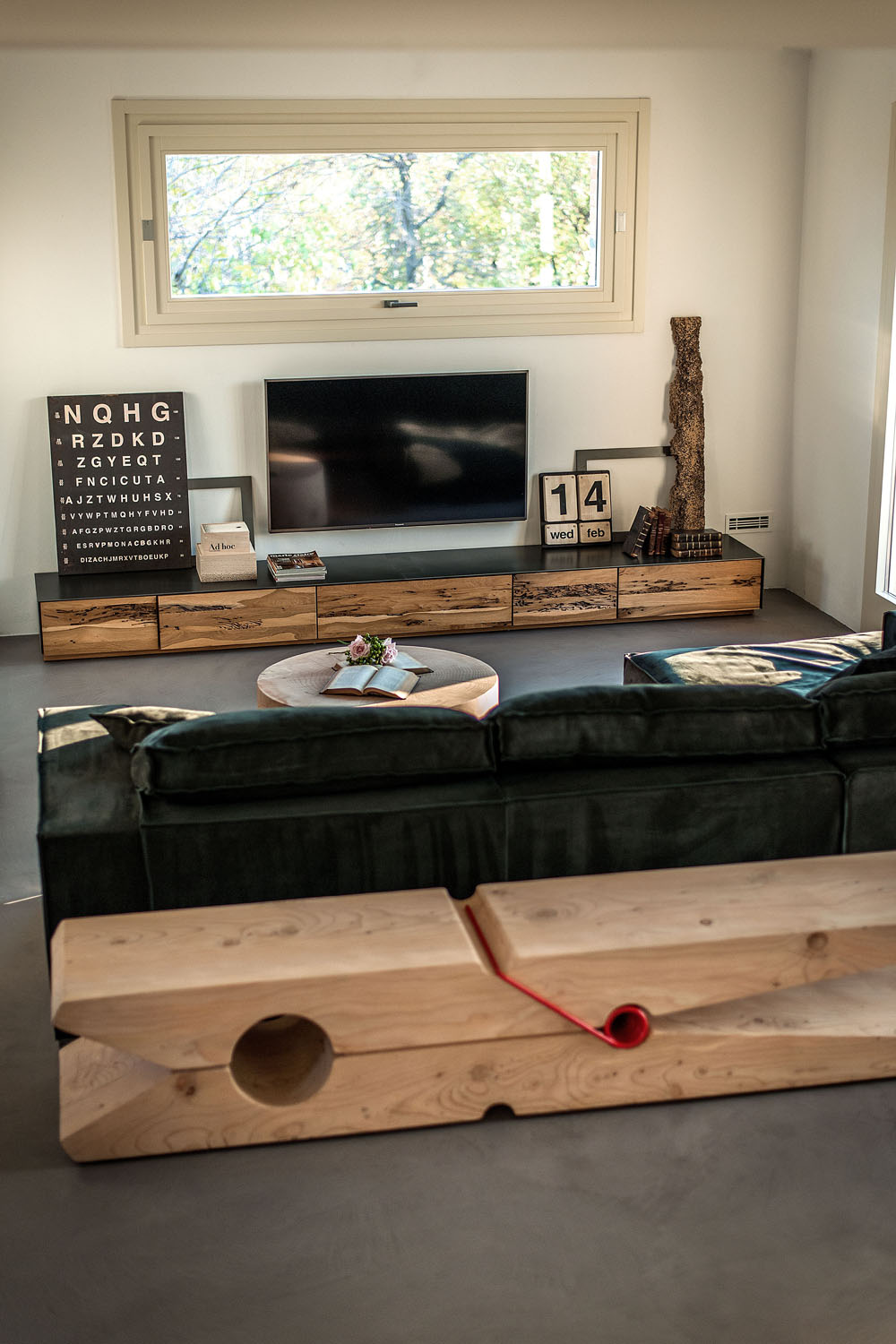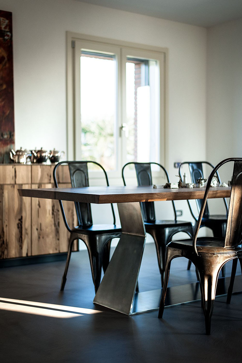 Des lignes essentielles et harmonieuses s'unissent et personnalisent les espaces de manière fonctionnelle et sobre, en commençant par la cuisine, fabriquée en bois massif et finie à la main avec des huiles naturelles, le cœur battant de la maison où l'on se retrouve pour d'agréables moments de convivialité, puis de la salle de séjour et de la salle de bains, embellies par la touche raffinée des Briccole di Venezia, du bois de récuperation provenant de poteaux désaffectés de la lagune vénitienne, et enfin de la chambre à coucher qui dispose d'un dressing spacieux et organisé en bois de cèdre du Liban odoriférant, pour contenir et ranger vos vêtements. Il n'y a pas de limites à vos besoins en matière d'ameublement !