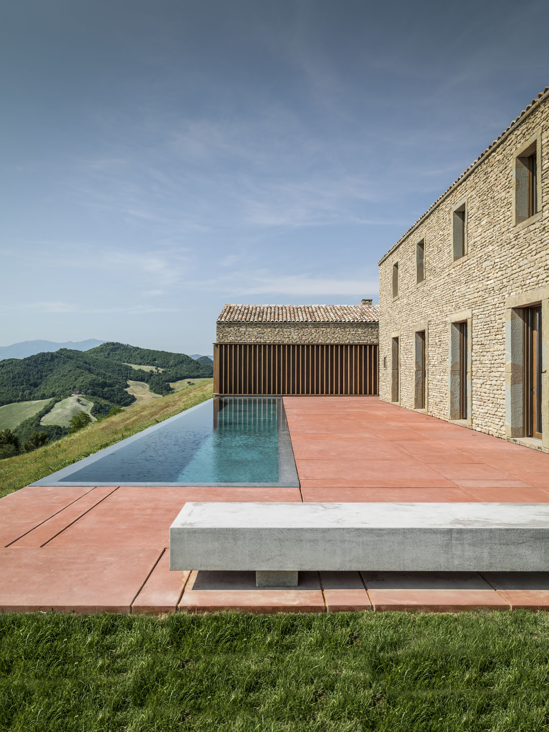 Des meubles exclusifs pour ajouter une touche de chic campagnard aux grands espaces et caractériser les zones grâce à la personnalisation sur mesure, par exemple, par d'importantes armoires et lambris. La combinaison de bois massif de qualité avec les parties structurelles de l'habitation contribue à réchauffer son atmosphère.
