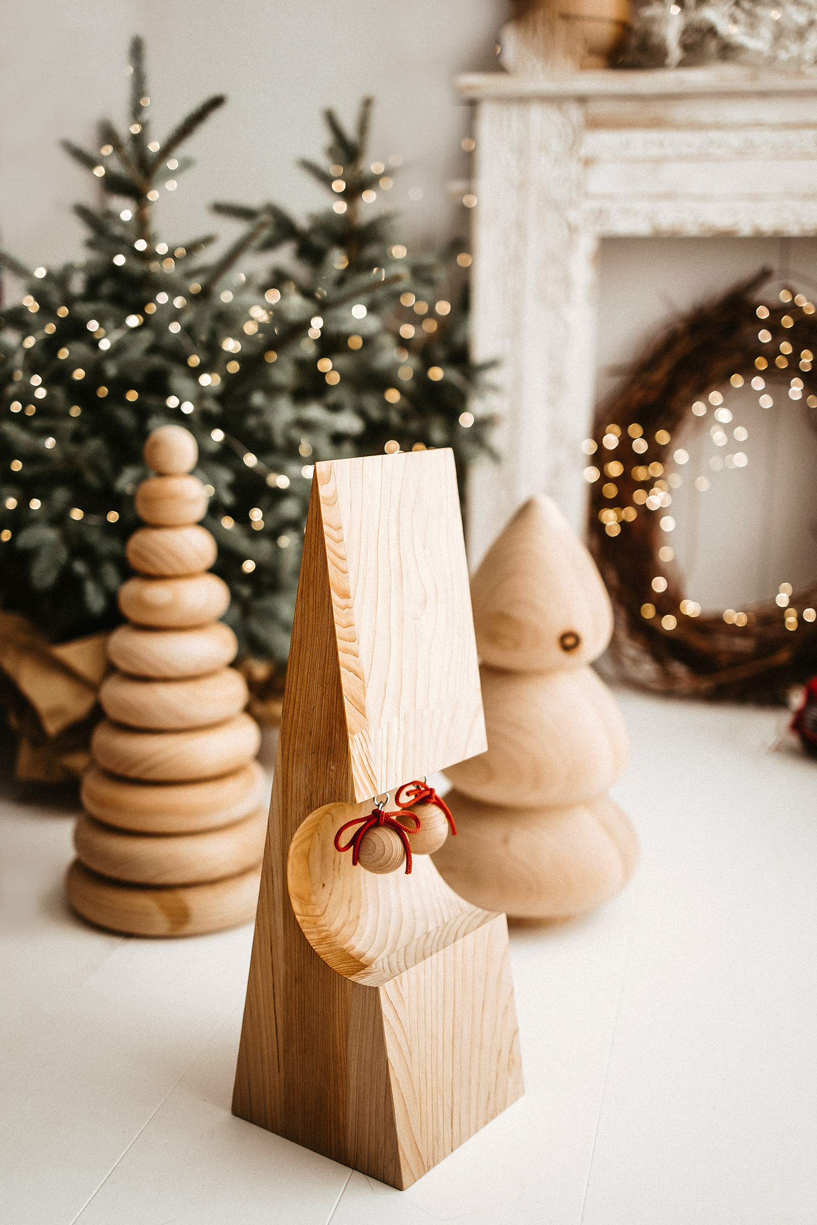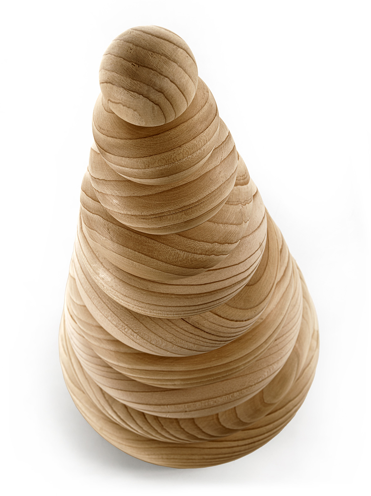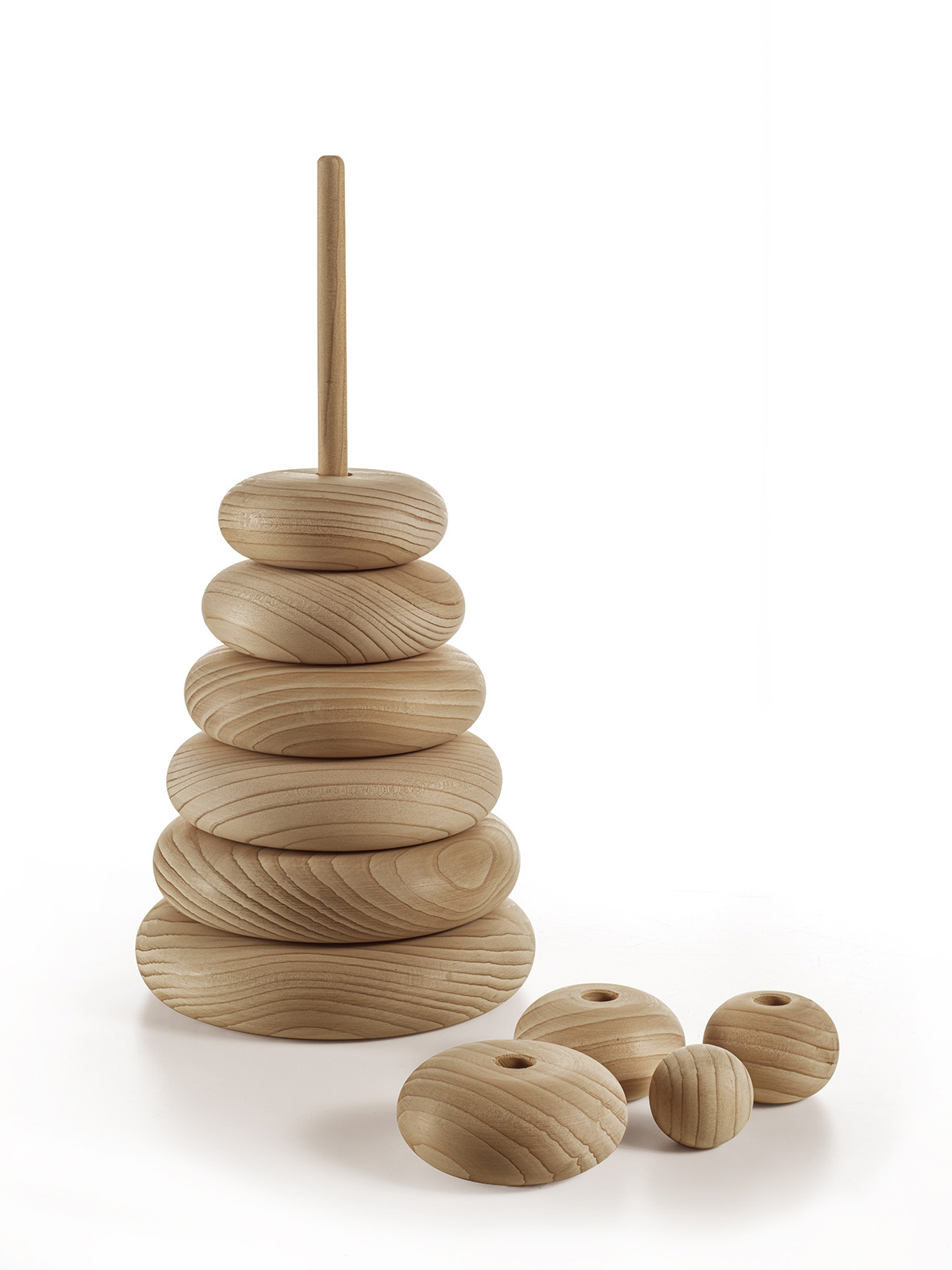 Prendendo ispirazione da un noto gioco per bambini, si reinterpreta il tradizionale albero di Natale; composto da 10 anelli di uguale spessore, ma di larghezza decrescente, dal basso verso l’alto, che vengono impilati su di una struttura centrale.