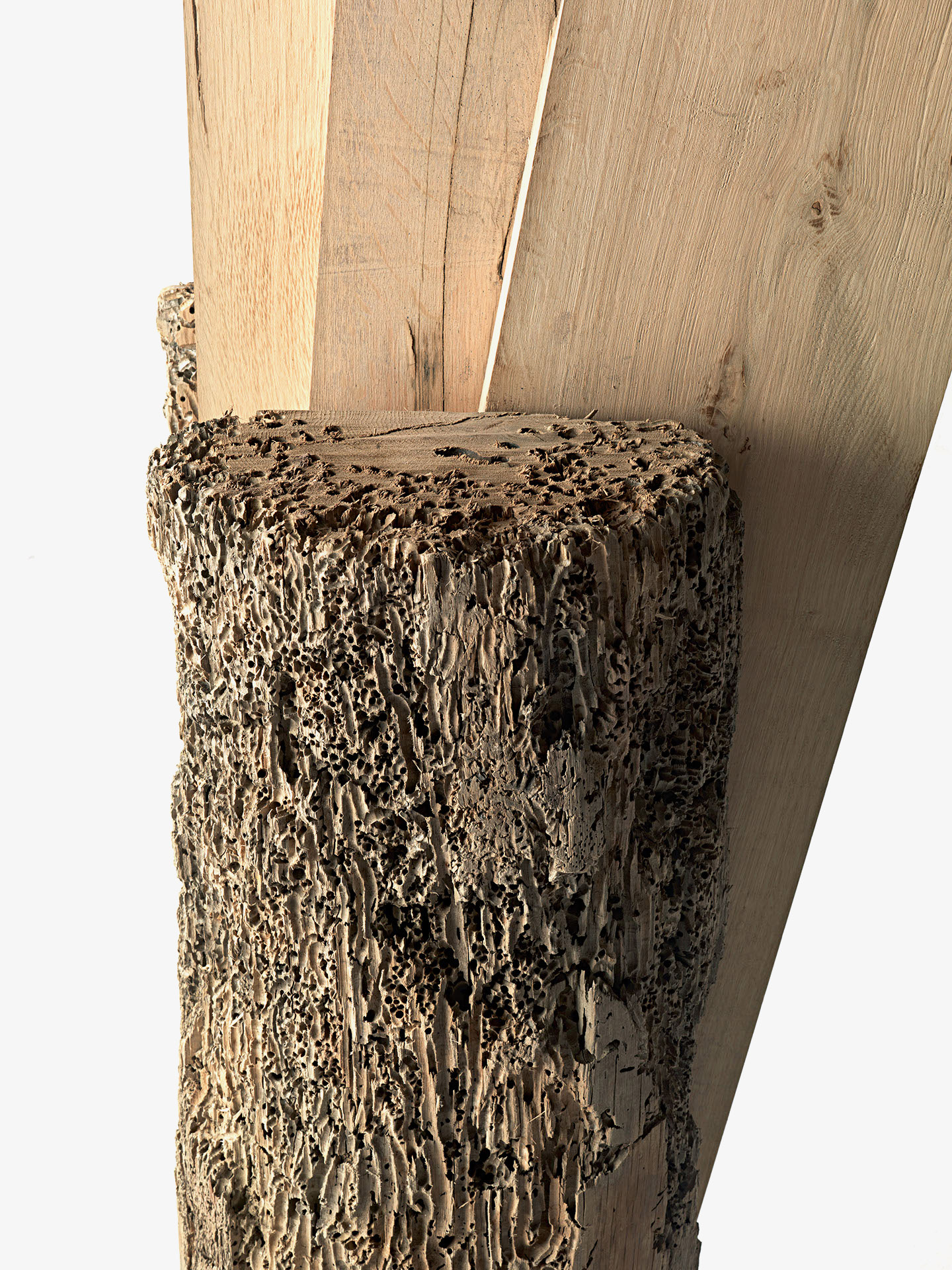 Enzo Mari descrive così la sua opera realizzata per il progetto “Tra le Briccole di Venezia”: Maurizio e Davide Riva mi hanno chiesto di realizzare un progetto utilizzando il legno di quercia delle "Briccole" in disuso, destinate ad incrementare qualcuna delle infinite discariche. Chiunque inorridisce alla vista delle discariche. Pochi agiscono concretamente. Occorre farlo... ma non è sufficiente. Una discarica è anche l'allegoria del pensiero collettivo oggi predominante tra i "creativi": i produttori di merce. Cosa posso fare? - Utilizzare il legno per realizzare un progetto decente (ad esempio, un tavolo) scartando giustamente ogni memoria della Briccola, mucillaggini e cavità realizzate da animali marini? - Oppure realizzare lo stesso progetto mantenendo ed esaltando grottescamente ciò che dovrebbe essere scartato? - Che senso ha una mostra dedicata alle Briccole? Decido di realizzare un'opera quale stendardo per la mostra: da una Briccola non ripulita fuoriescono tre tavole di quercia semilavorate in attesa di essere utilizzate…