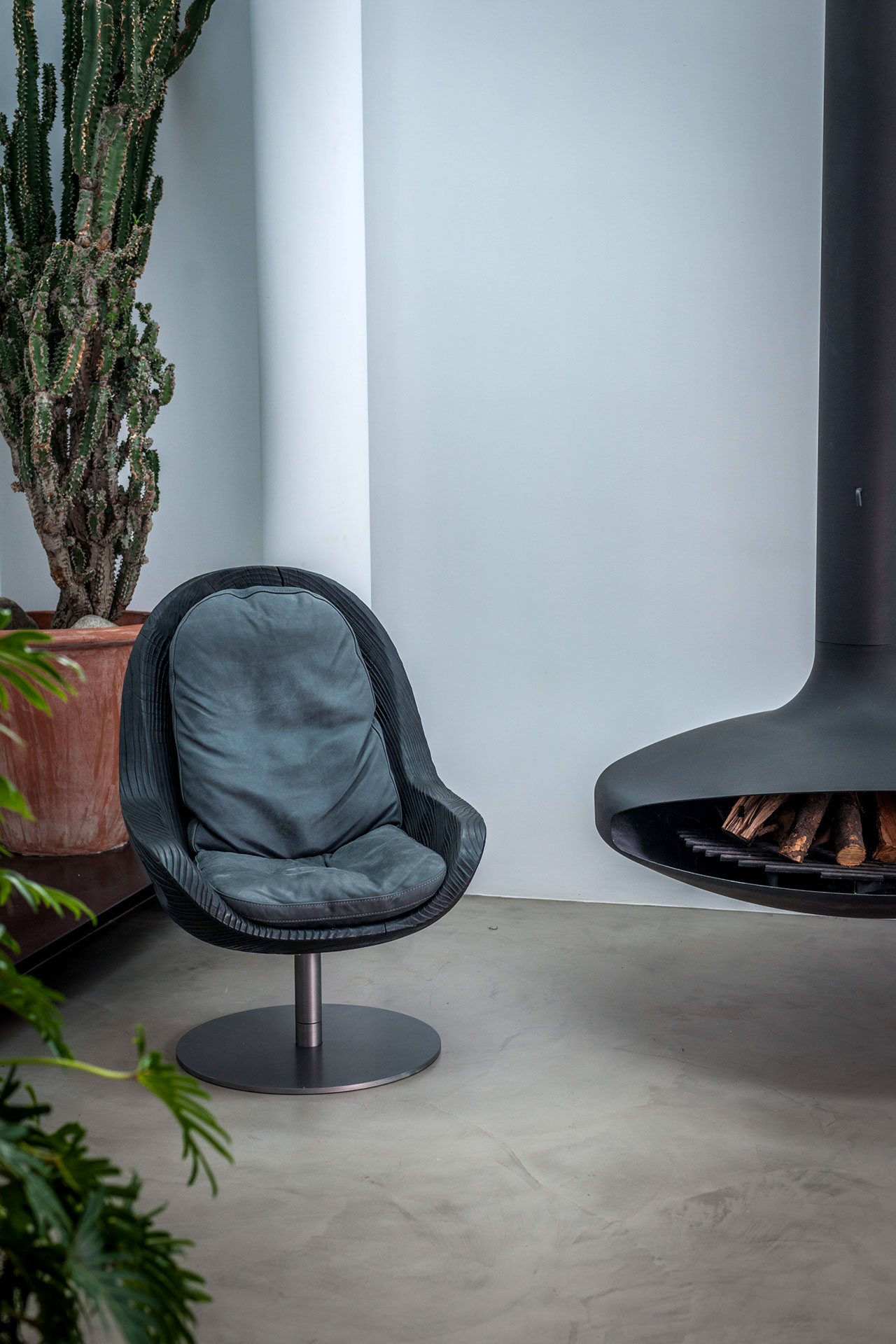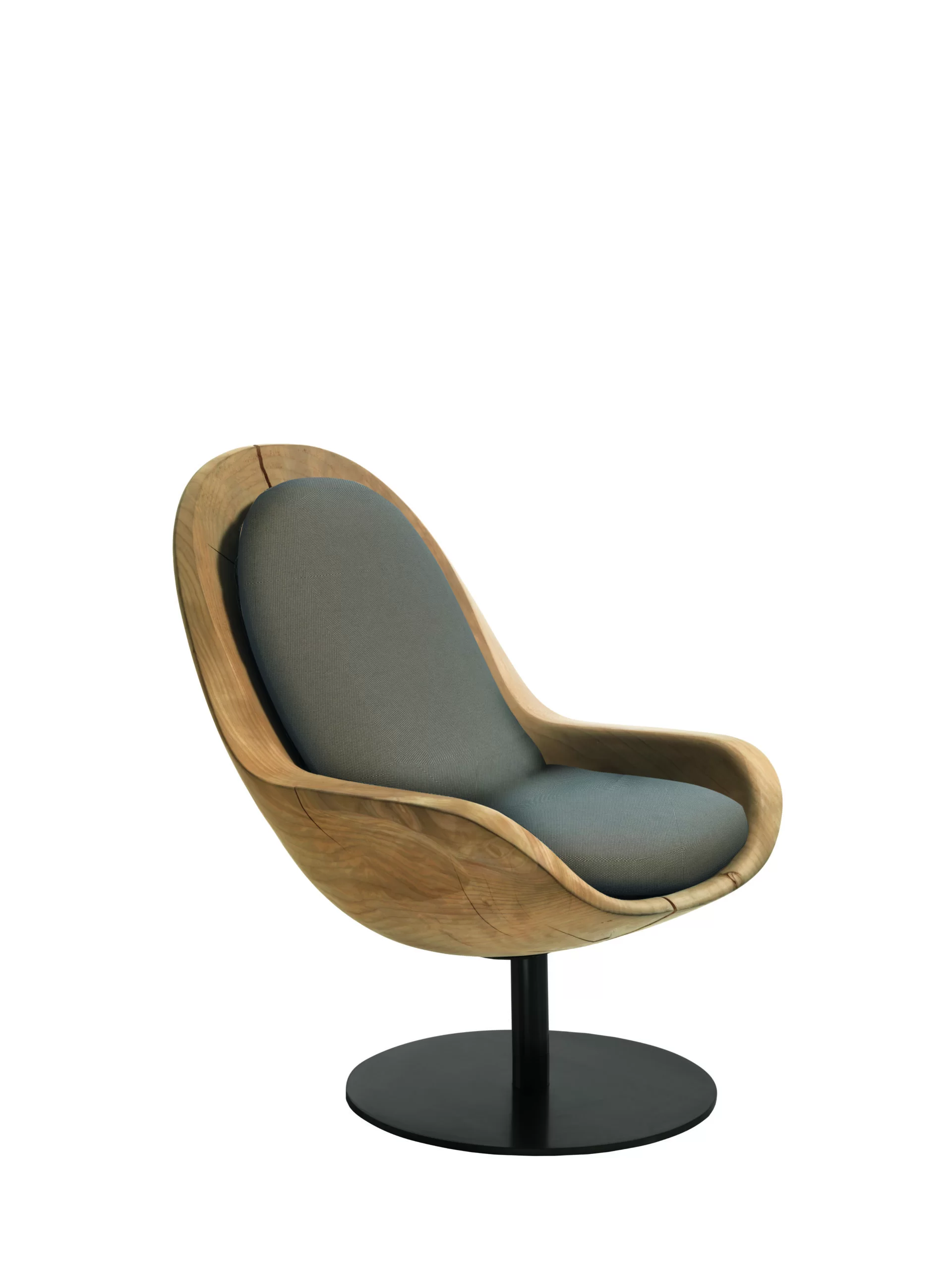 Poltrona in legno massello di cedro profumato lavorata da un blocco unico, si caratterizza per la scocca avvolgente ed ergonomica in linea di continuità tra seduta e schienale. A richiesta cuscino d’appoggio in tessuto o pelle con cuciture a vista. Basamento con gamba tubolare e piastra in ferro. Per utilizzo outdoor, disponibile solo in Tessuto Patio.
