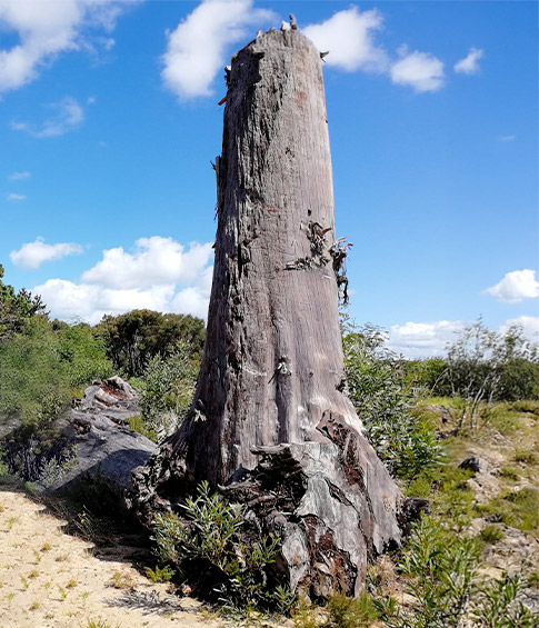 Около 50 000 лет назад, в конце последнего ледникового периода, серия до сих пор необъяснимых катаклизмов уничтожила целые леса Каури, затопив их водой. Копаясь в земле, вы встретите настоящие «лесные шахты». Исключительность заключается в том, что, несмотря на тысячелетнее пребывание в воде и грязи, эти стволы прекрасно сохранились и обладают теми же характеристиками, что и свежесрубленная древесина. Особые условия этой грязи и нехватка кислорода позволили деревьям, оставшимся в болотах на 30/40/50 тысяч лет, бросить вызов химическим процессам разложения и окаменения. Деревья прекрасно сохранились до наших дней.