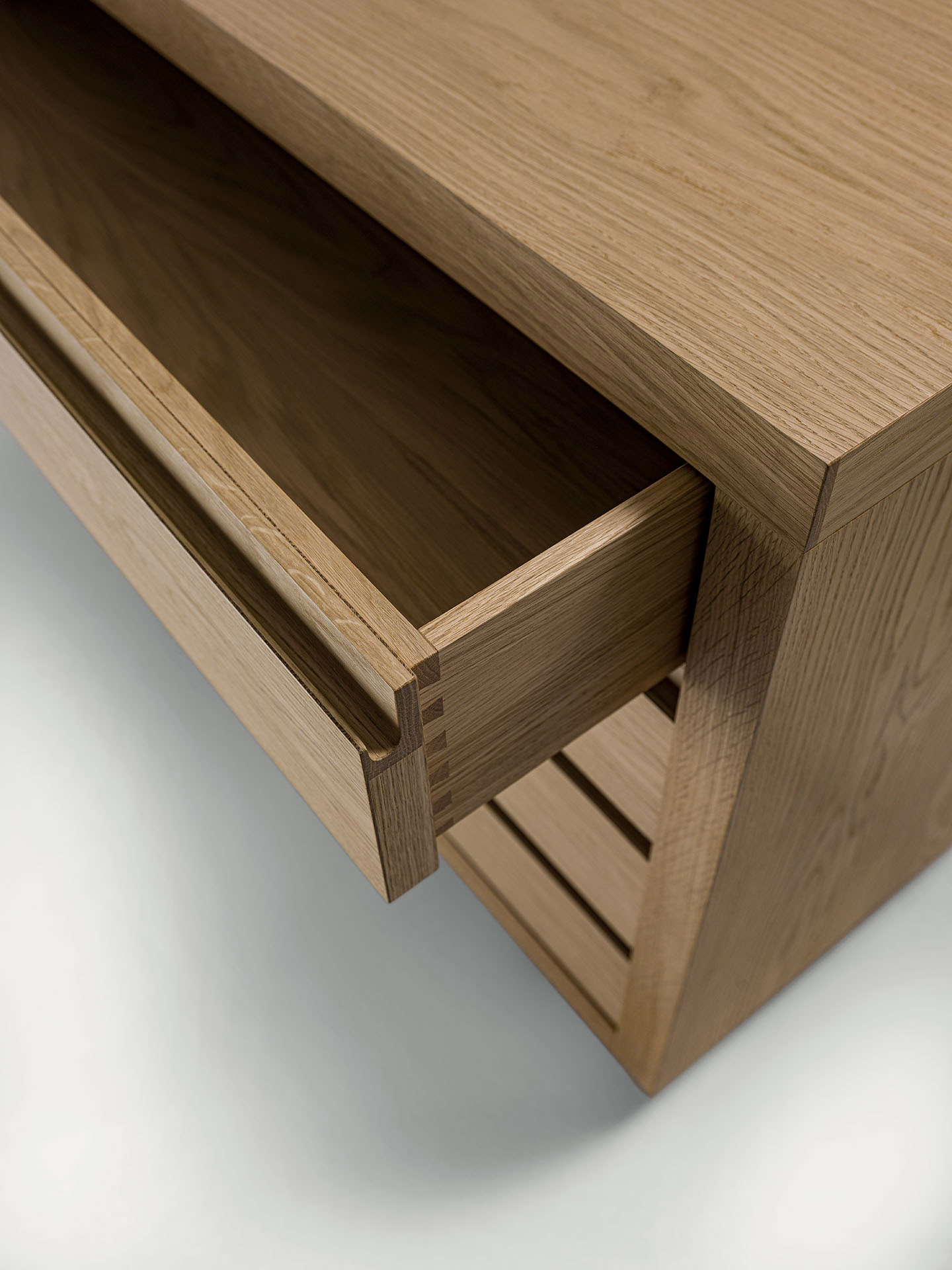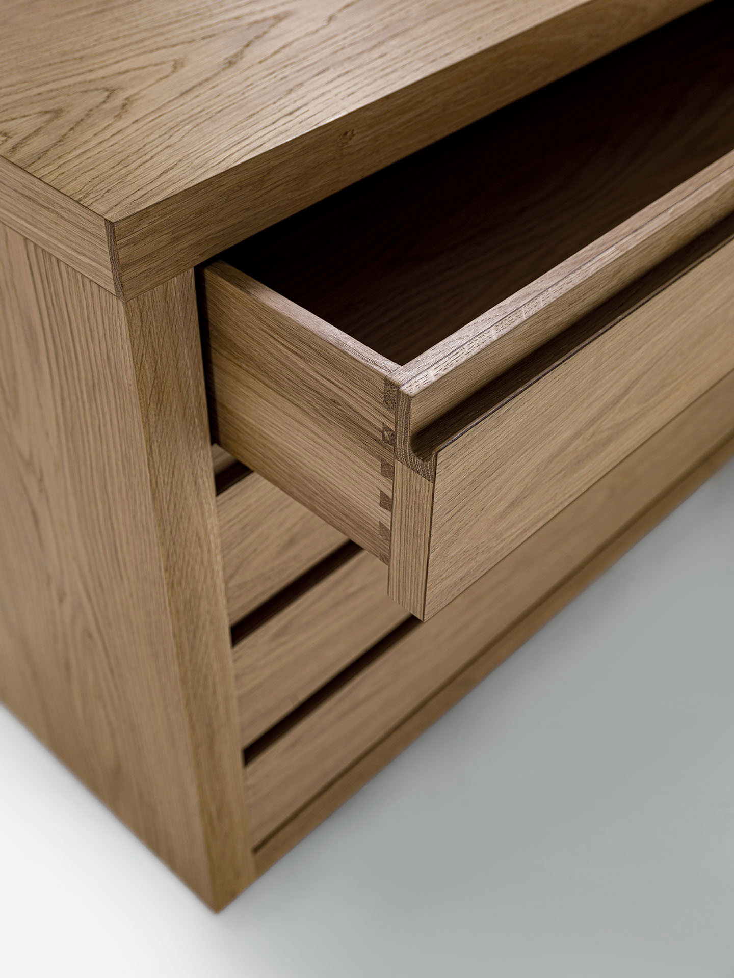 Комод из наборного массива и массива дерева, с 4 ящиками, выполненными в традиционном соединении «ласточкин хвост».